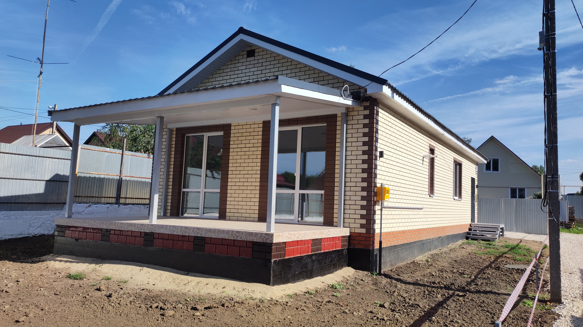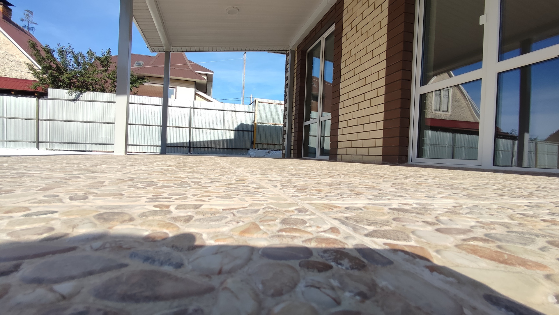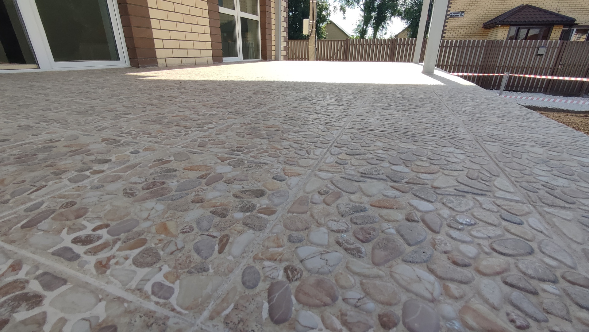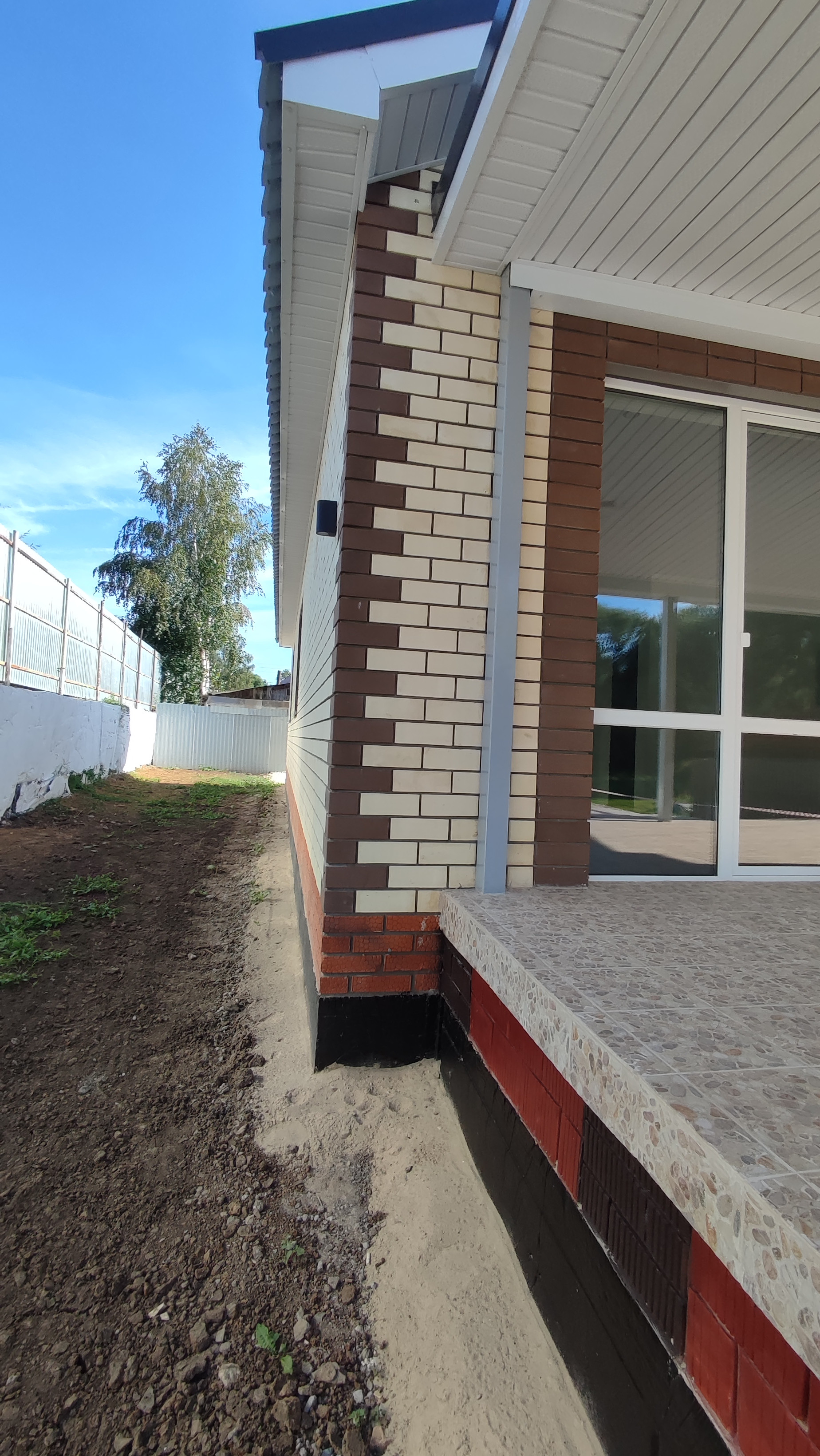 •    Дорога вдоль дома уложена щебнем