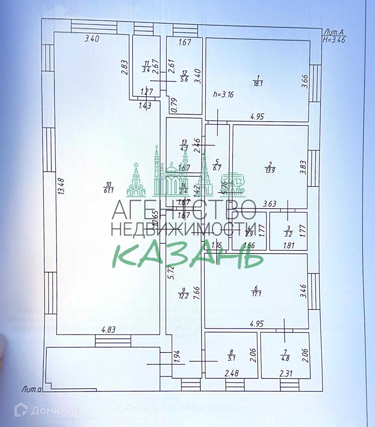 Площадь кухни 61.1 м2