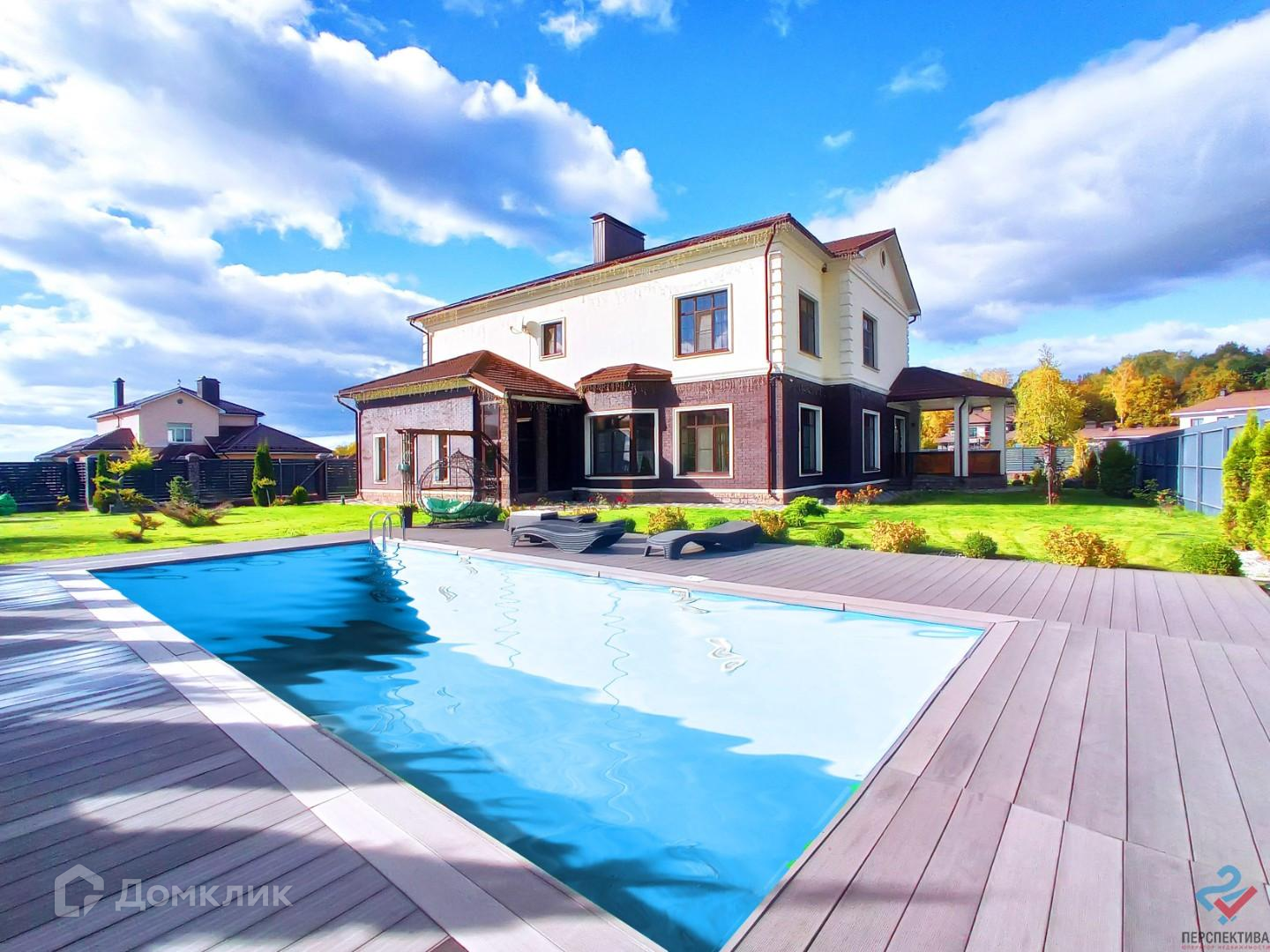 - На территории располагается бассейн с зоной отдыха, выполнен ландшафтный дизайн с продуманным освещением.