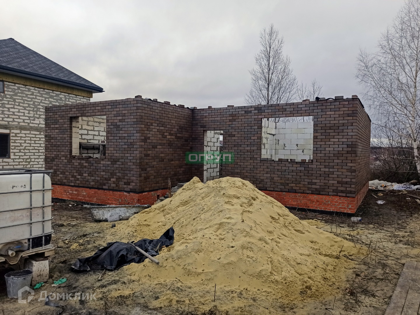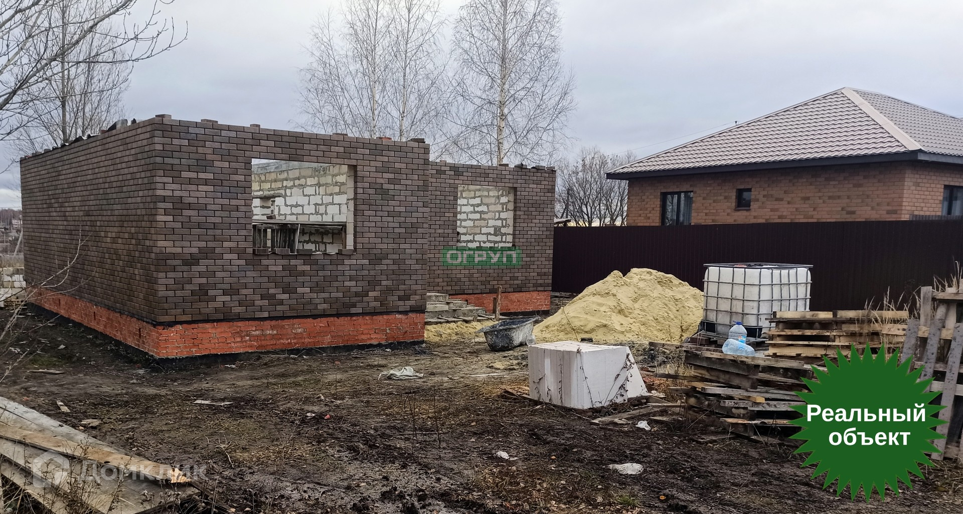 - построен из пеноблока, обложен дорогим облицовочным кирпичом «баварская кладка».