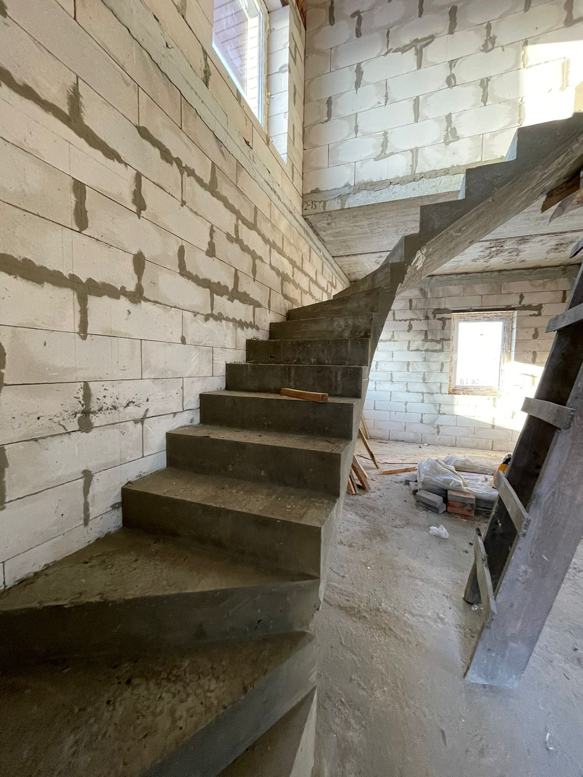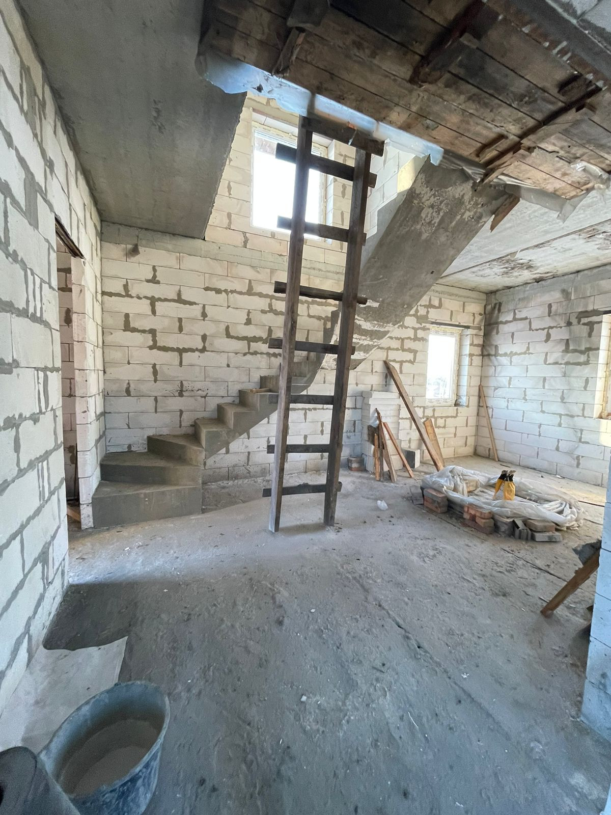 Фундамент свайно- ростверковый, армированный пояс усиленный, бетон марки М300 шириной 600 мм, цоколь дома поднят керамическим кирпичем. Перекрытия пола первого и второго этажа- новые пустотные железобетонные плиты, есть техподполье. Стены дома 50 см: автоклавный газобетонный блок Д500, облицовочный керамический кирпич. Кровля: металлочерепица 0.5, утепление 200 мм. Сделана бетонная межэтажная лестница.