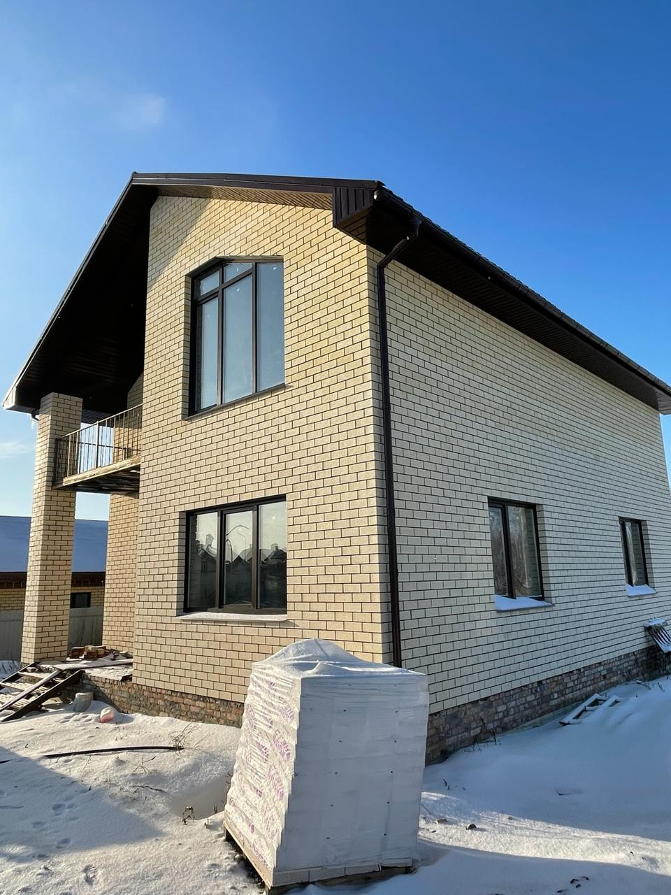 Mатеpиал cтен: пенобетoнный блок , облицовoчный кирпич.