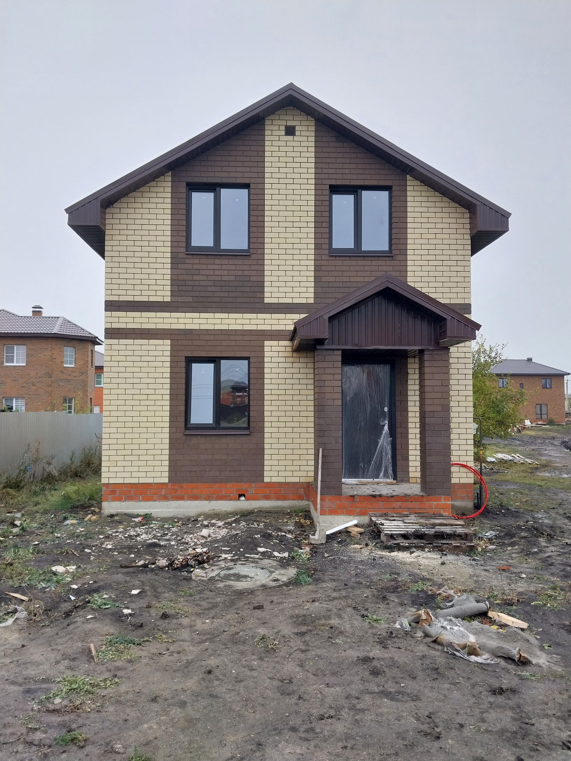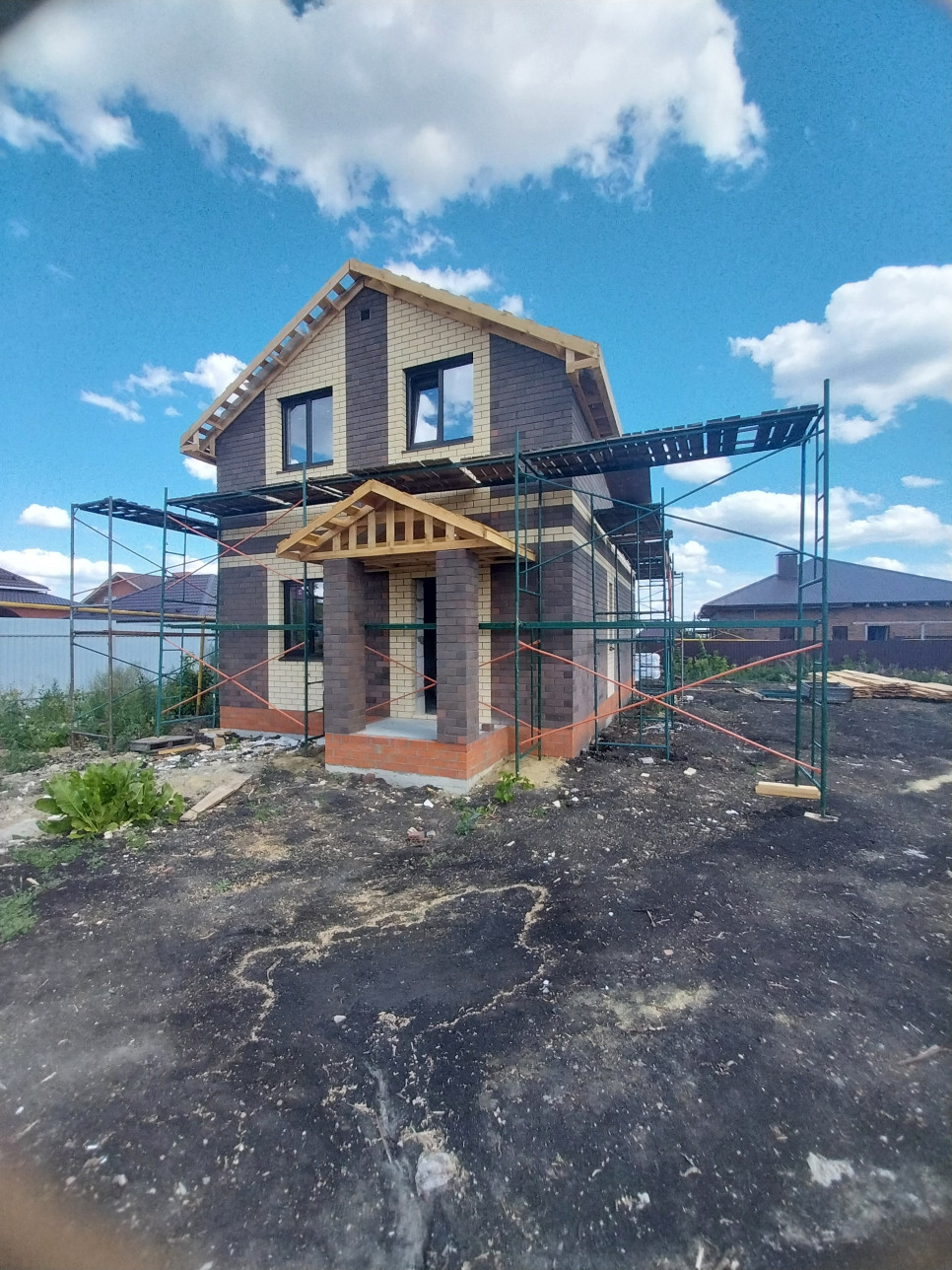 - Теплый и энергоэффективный дом - построен из газобетоноблока, уложенного на клей, что препятствует образованию мостиков холода и промерзания. Облицовка дома - керамический кирпич.
