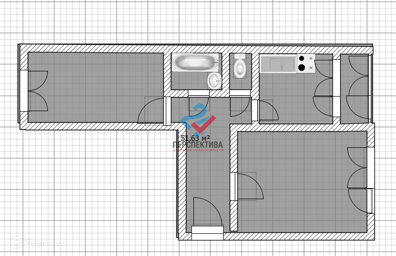 Общая площадь 51.2 м2