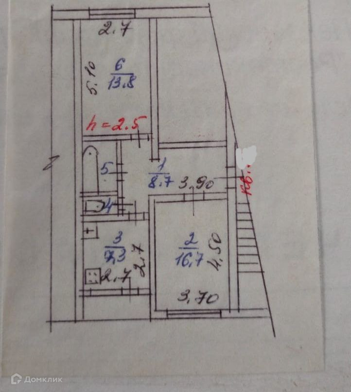 Высота потолков 2.5 м