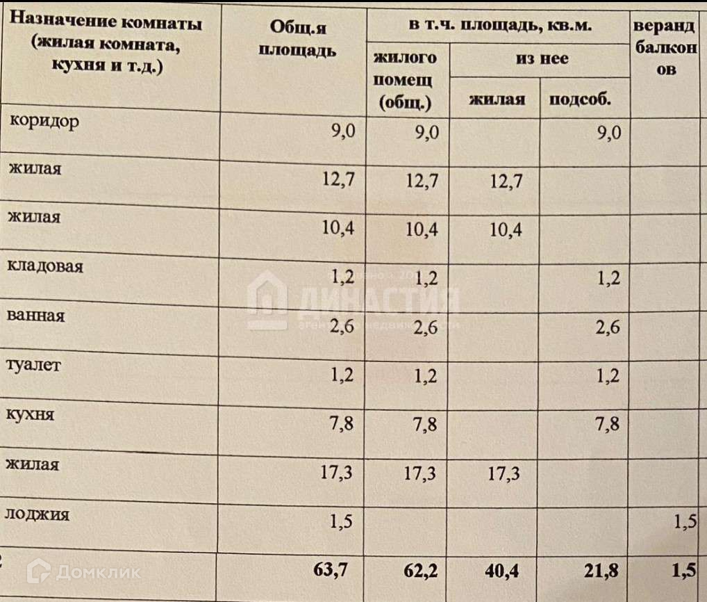 Общая площадь 62.2 м2