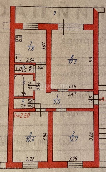 Площадь кухни 7.8 м2