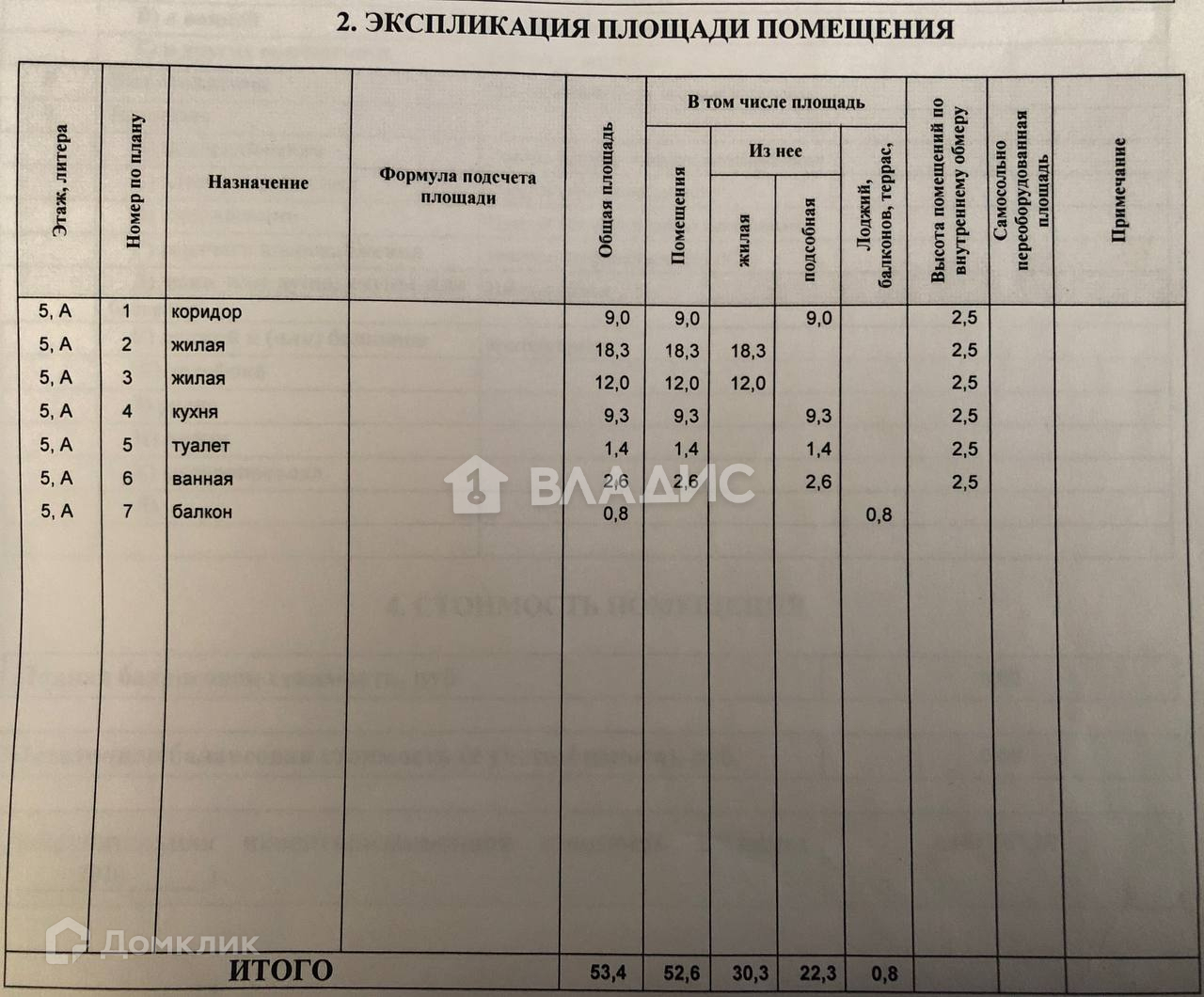 Общая площадь 53.4 м2