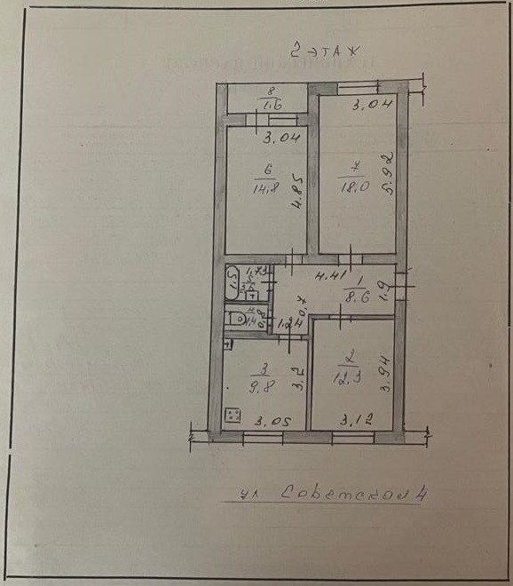3-комнатная квартира, 67.5 м2, этаж 2 / 5, на продажу в селе Богословка, Советская улица, 4