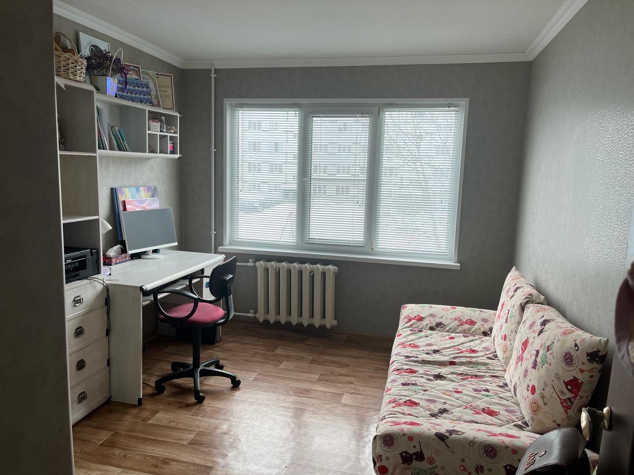 Квартира в хорошем состоянии, линолеум, пластиковые окна на восток-запад, балкон застеклен, сан.санузел в современном кафеле, металлическая входная дверь, счетчики, квартира не угловая.