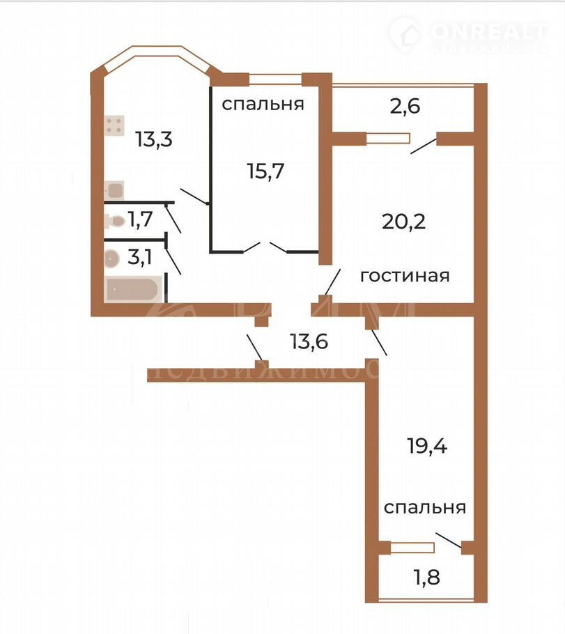 Комната 2: 19.4 м2