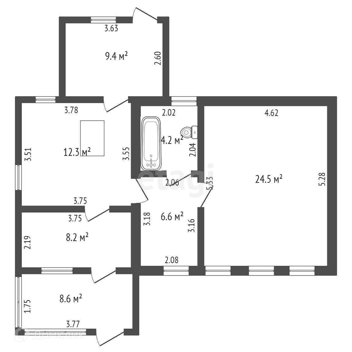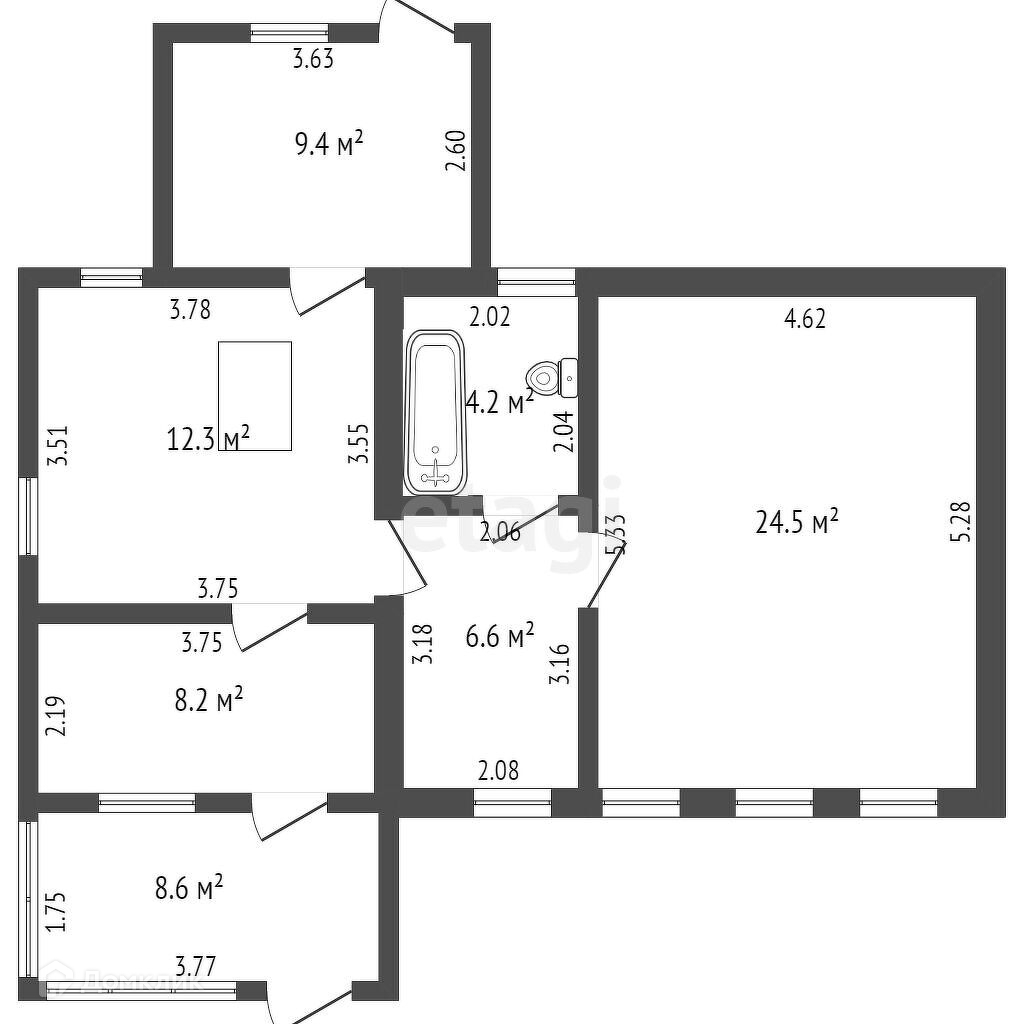 Общая площадь 55.8 м2