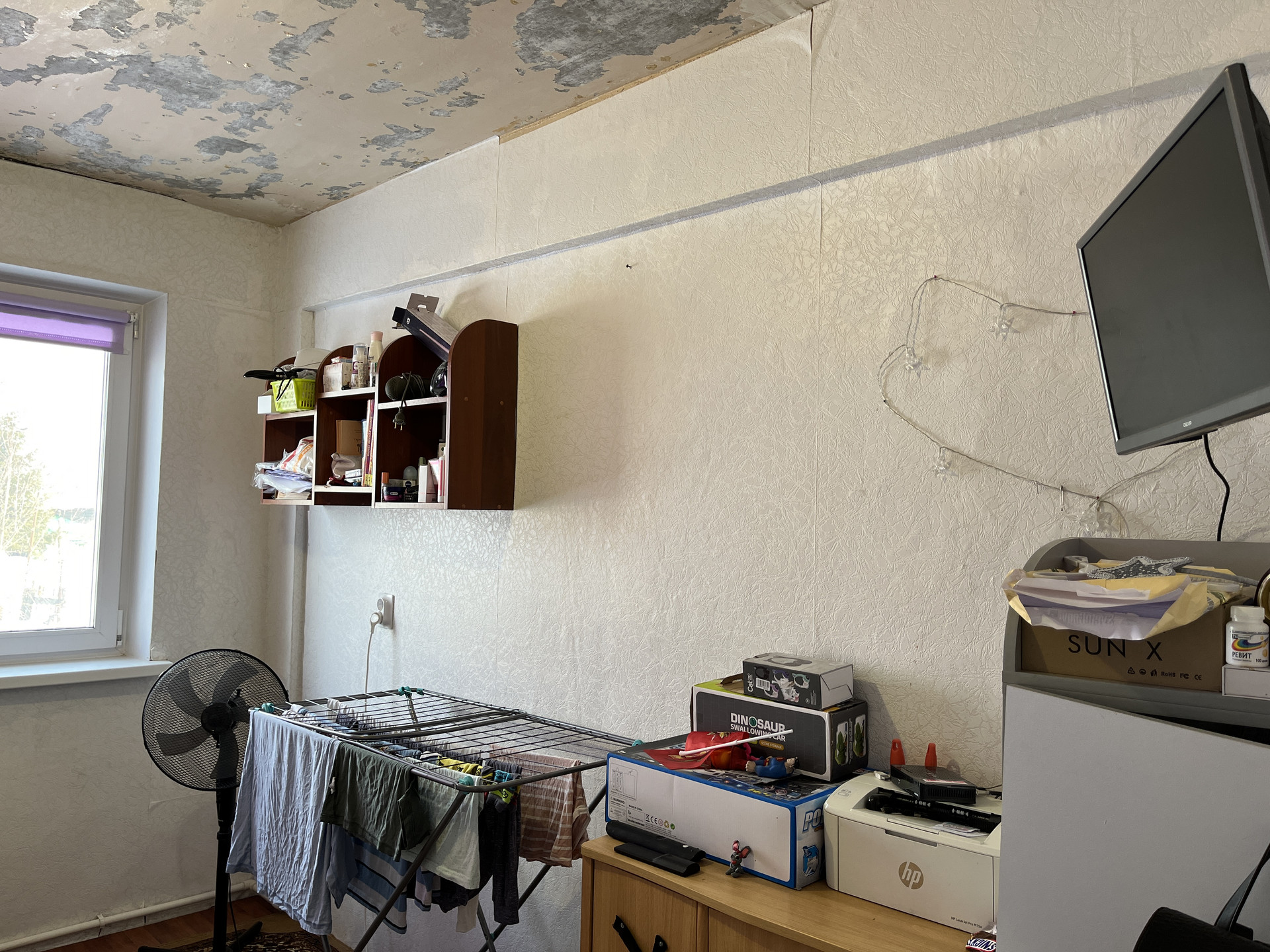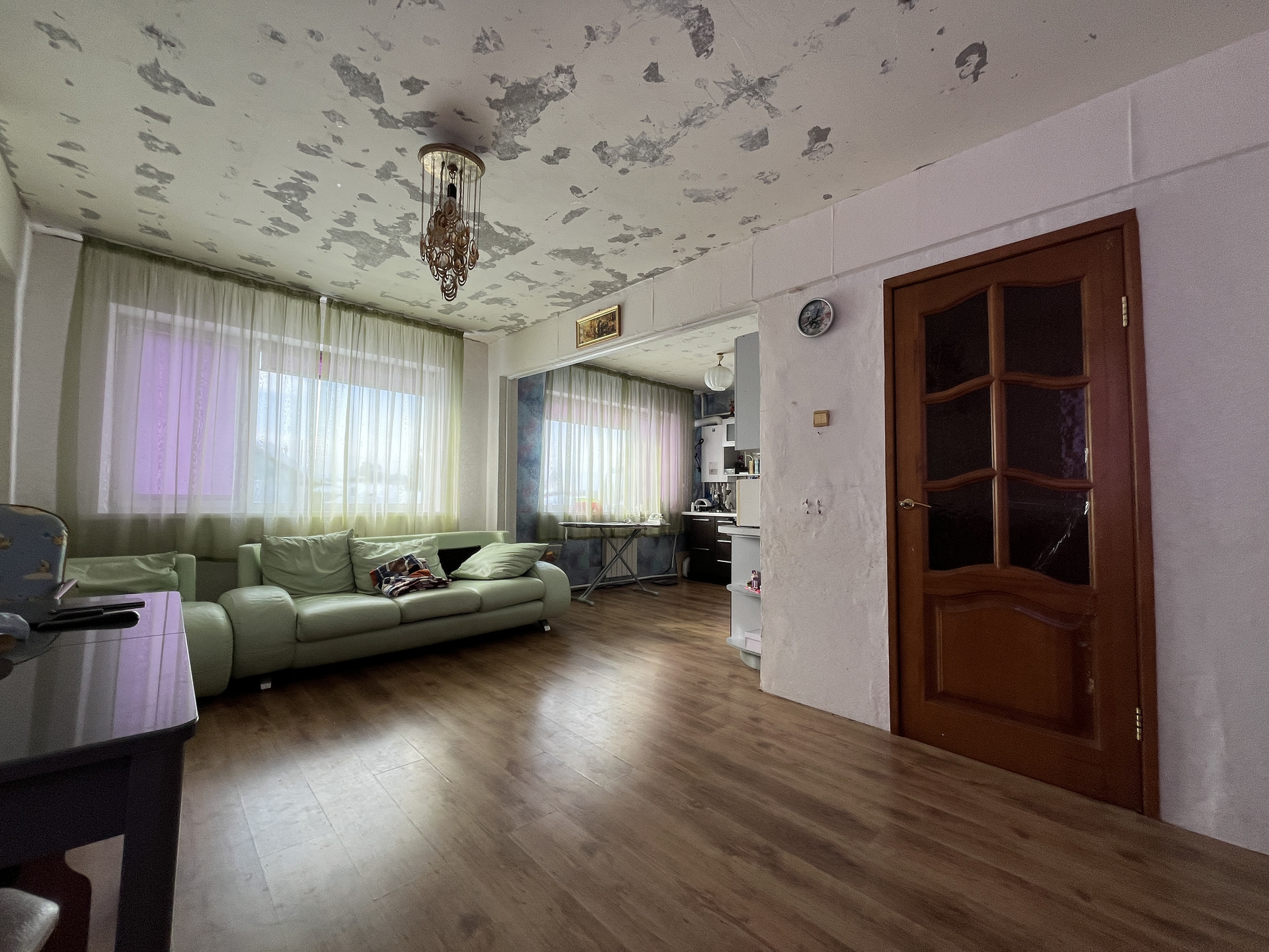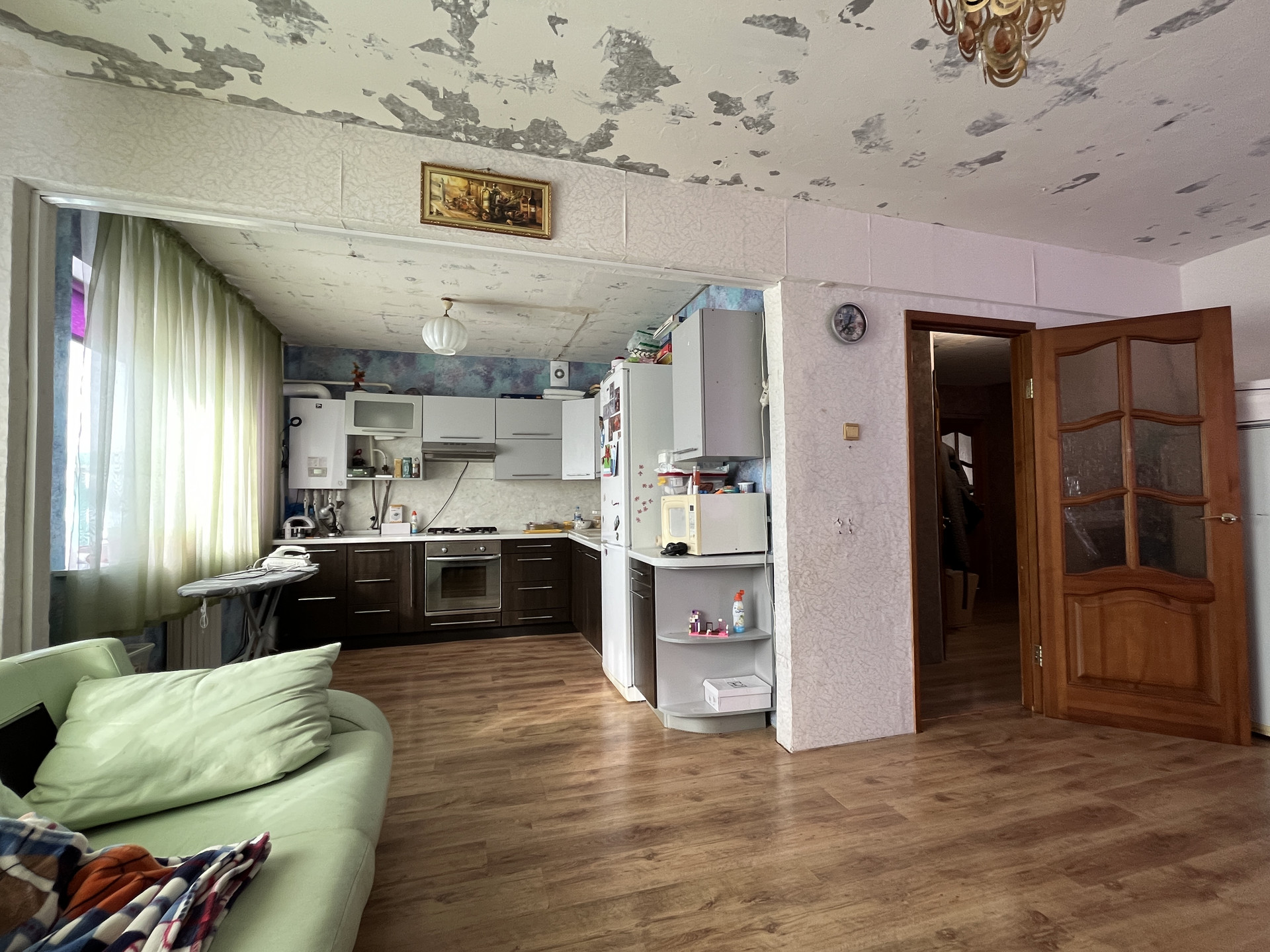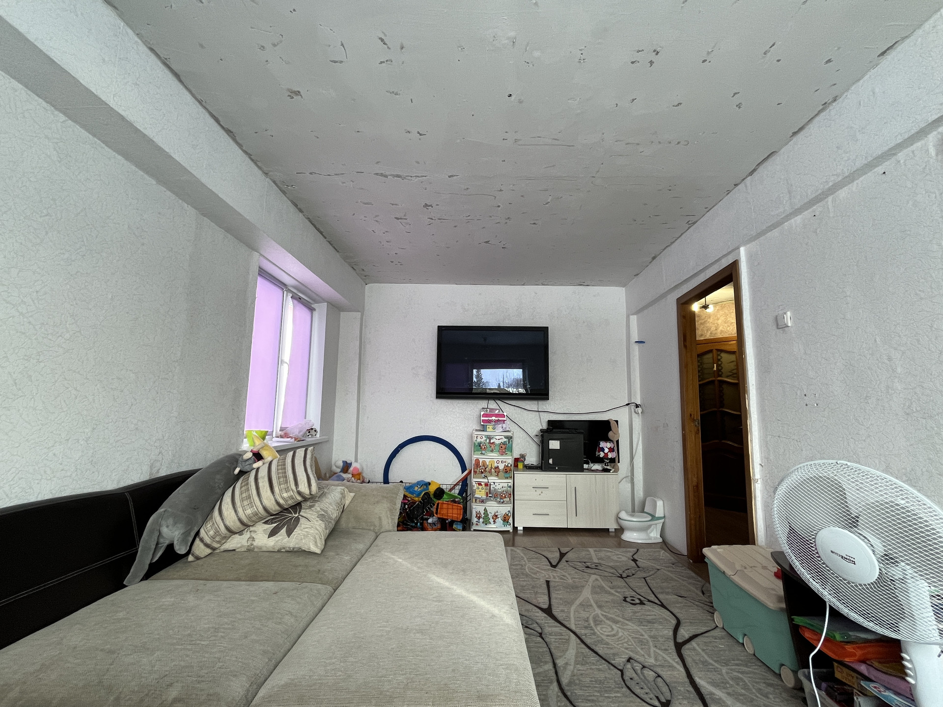Потолки подготовлены под штукатурку и обои под покраску.