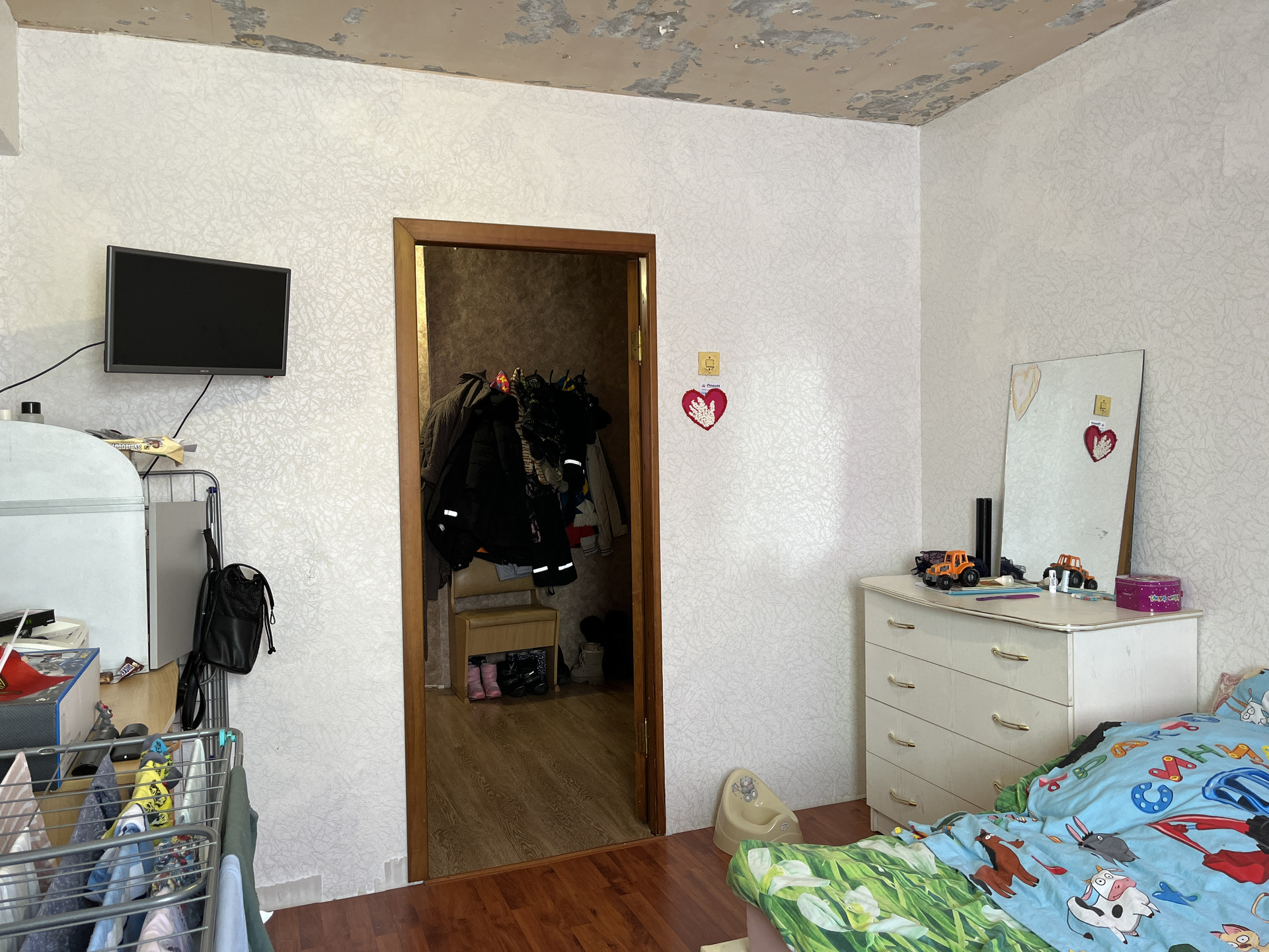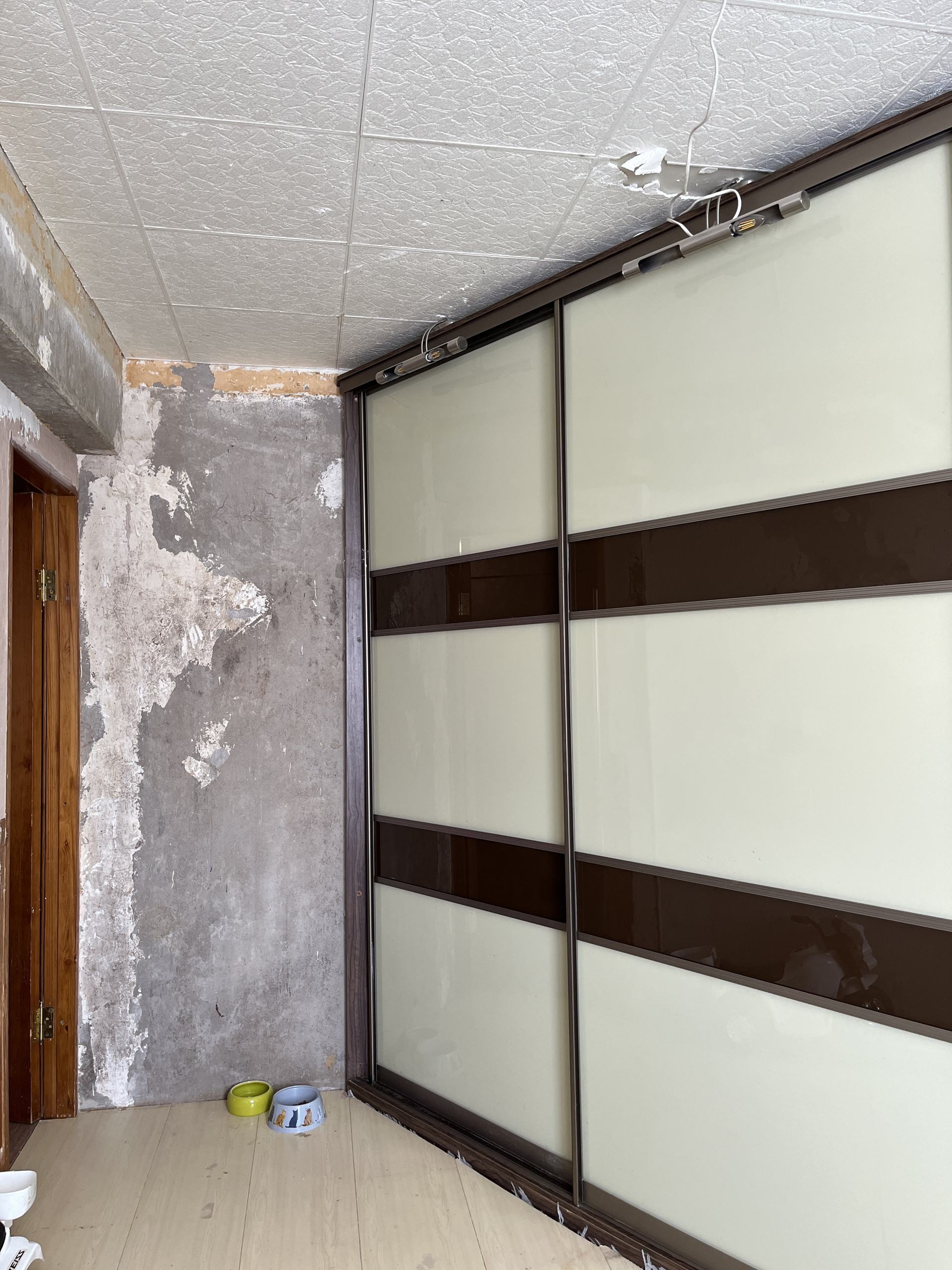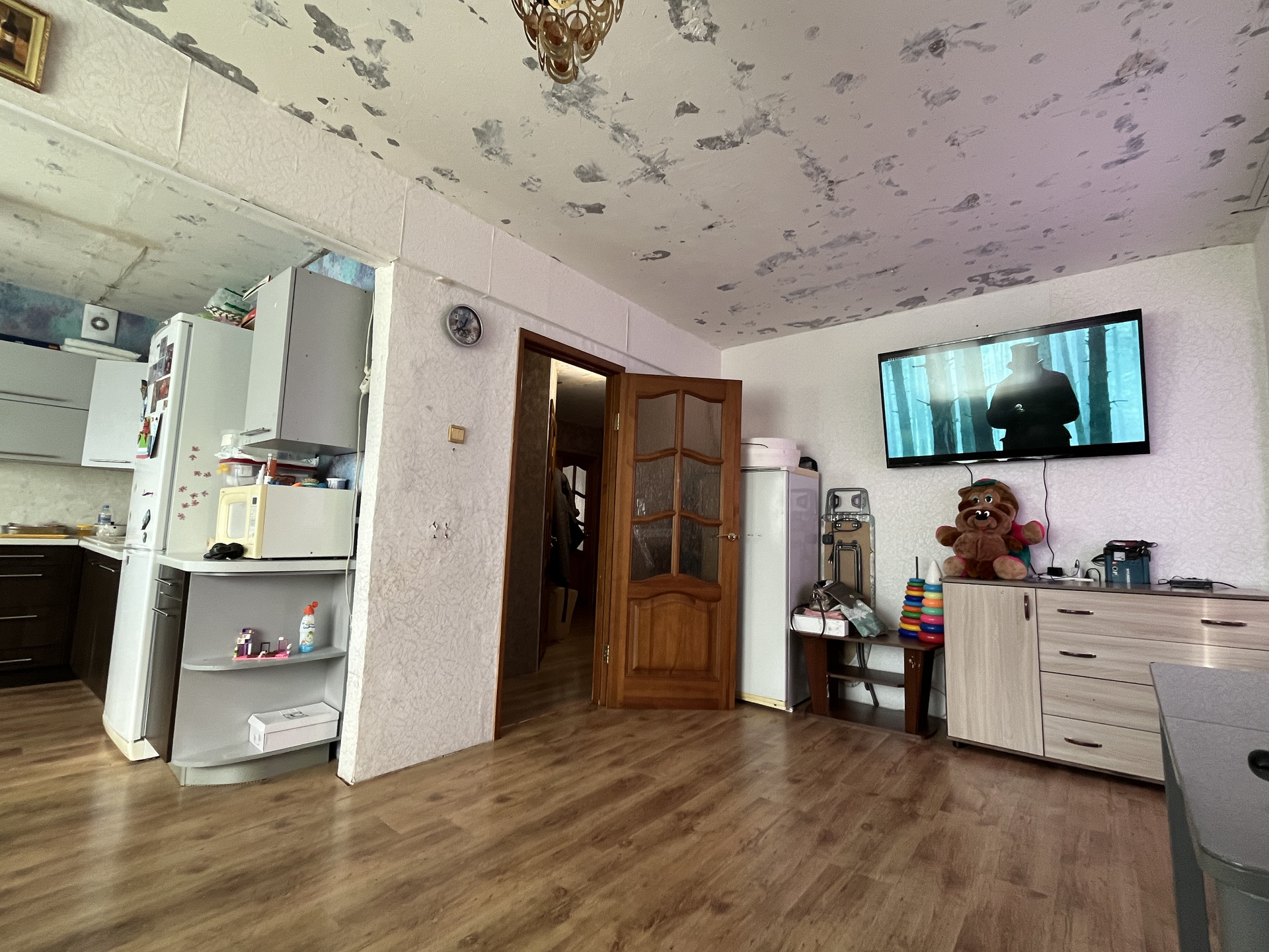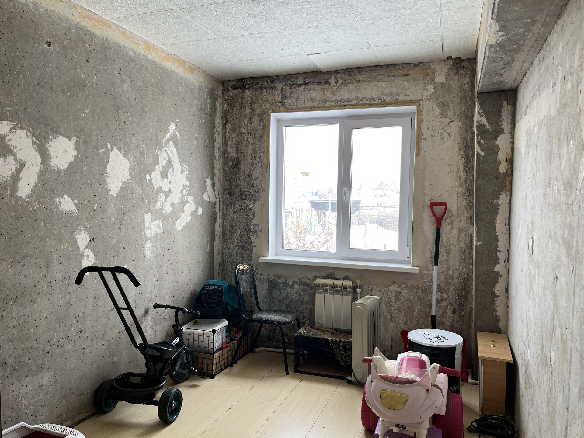 Потолки подготовлены под штукатурку и обои под покраску.