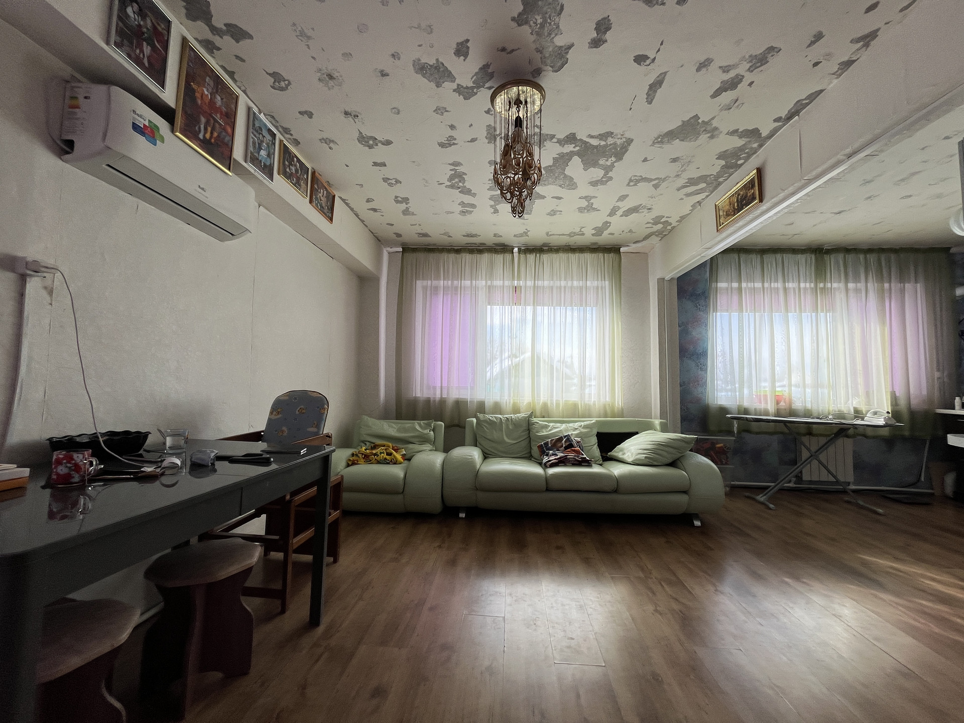 Большая кухня-столовая 27,6 кв.м., кухонный гарнитур, посудомойка. Кондиционер.