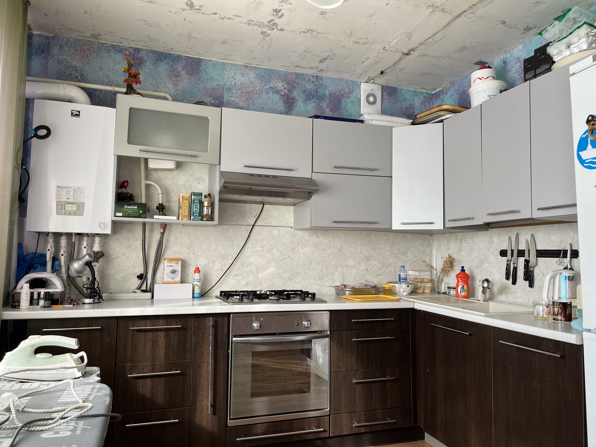 Установлен новый 2-х контурный газовый котел на отопление и подогрев воды и счетчики.