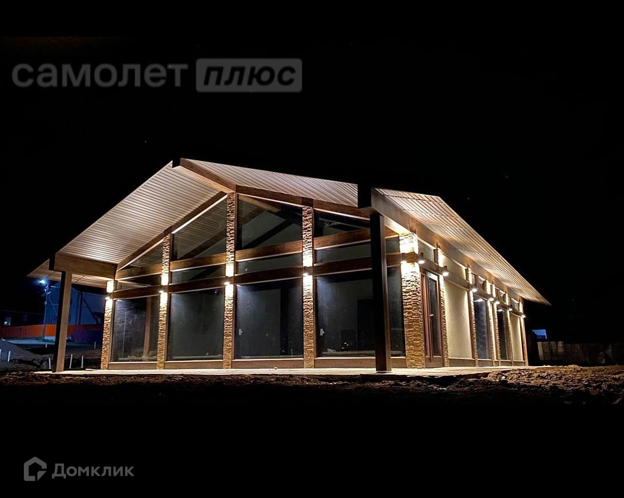 По периметру установлена красивая подсветка дома.