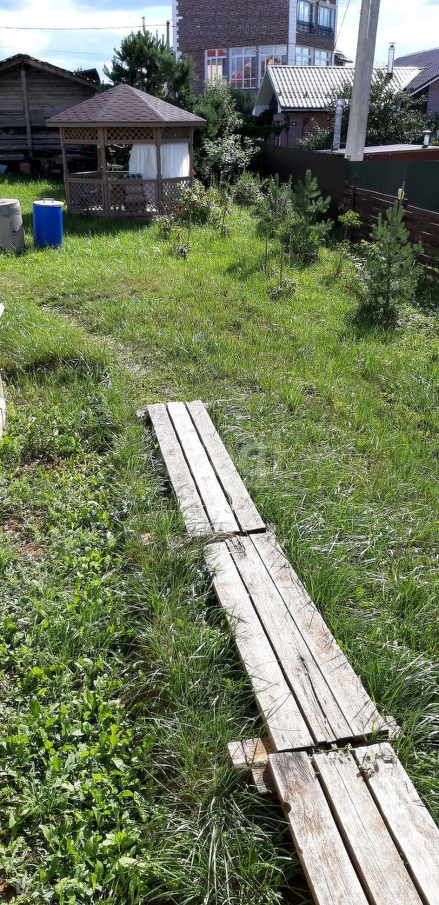 На участке есть беседка, кусты с крыжовником, чёрной смородиной, жимолостью, малиной. Посажены сосны и можжевельник.