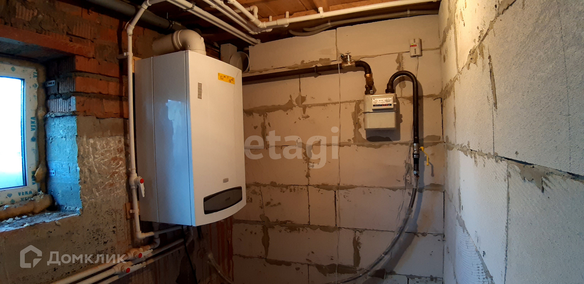 Отопление и горячая вода - газ. Котёл Baxi. Есть водонагреватель на 100 литров. Через него проходит горячая вода и он служит накопителем.