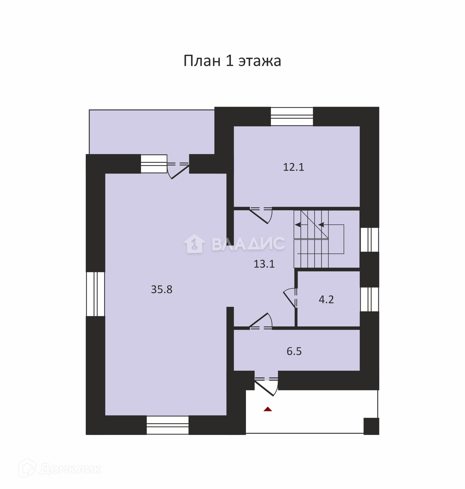 Hа 1 этаже просторная кухня-гостиная 35,8 м2  с выхoдом на веpанду, совмещенный санузел , просторная прихожая с гардеробной , гостевая спальня .