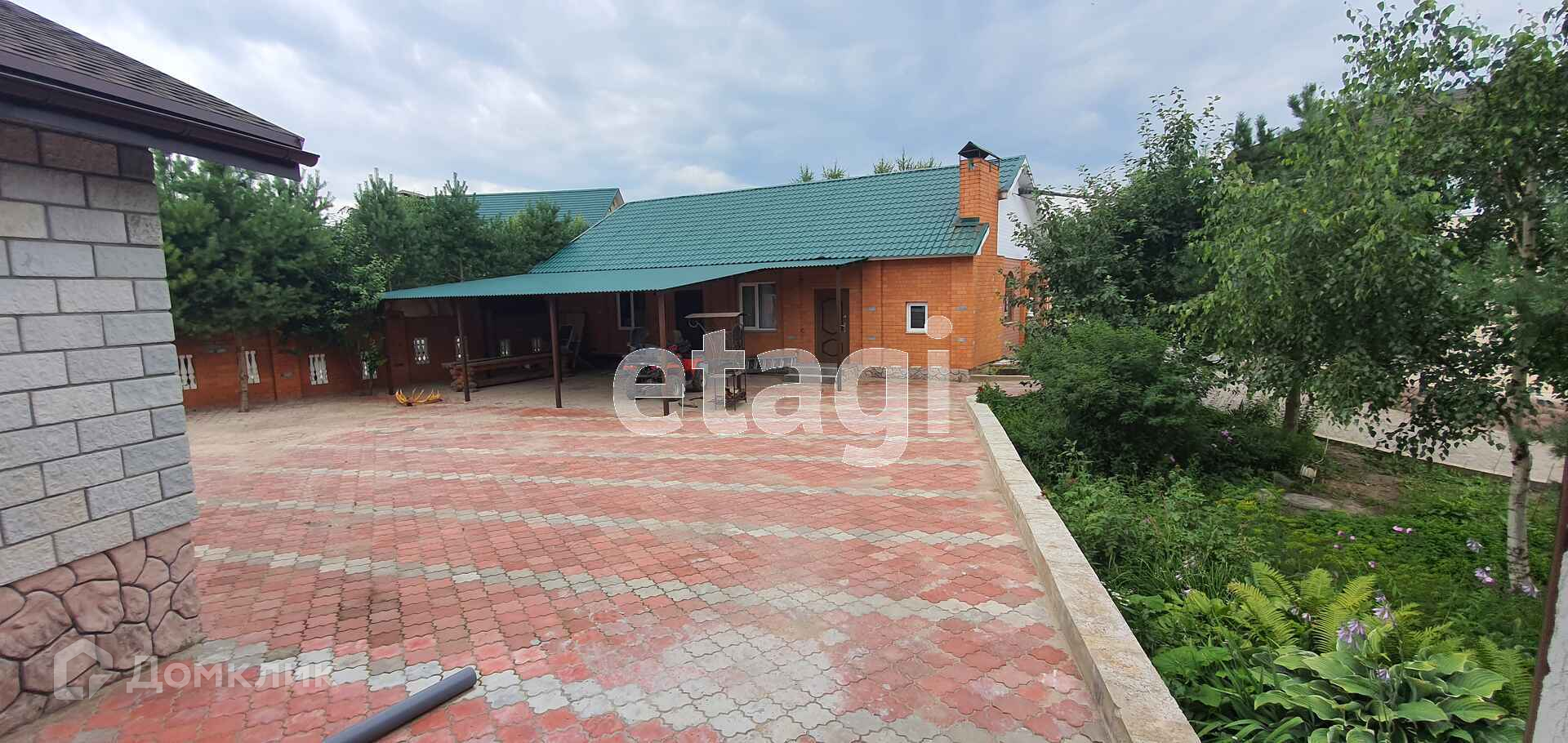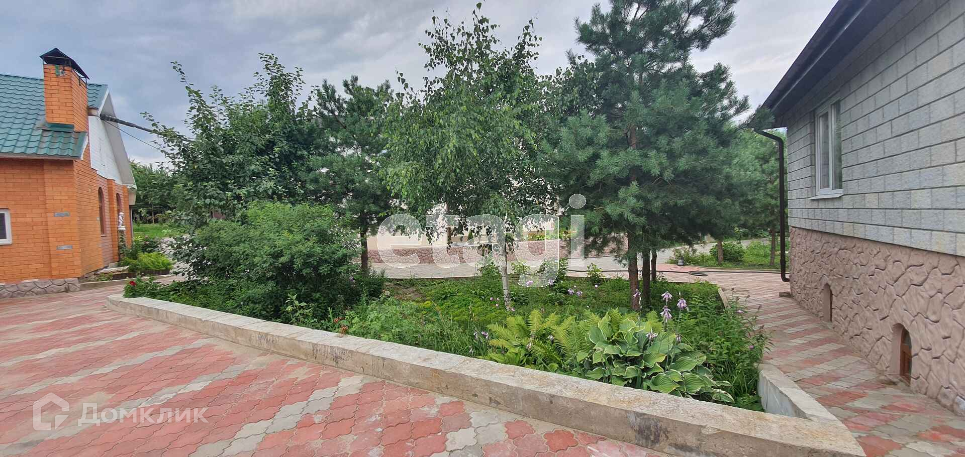 у дома своя огороженная территория с 10 сотками земли и плодово- ягодными насаждениями (ухоженный сад и придомовая территория дома), на территории дома помещается до 5-6 машин, автоматические железные ворота, вся территория огорожена высоким забором
