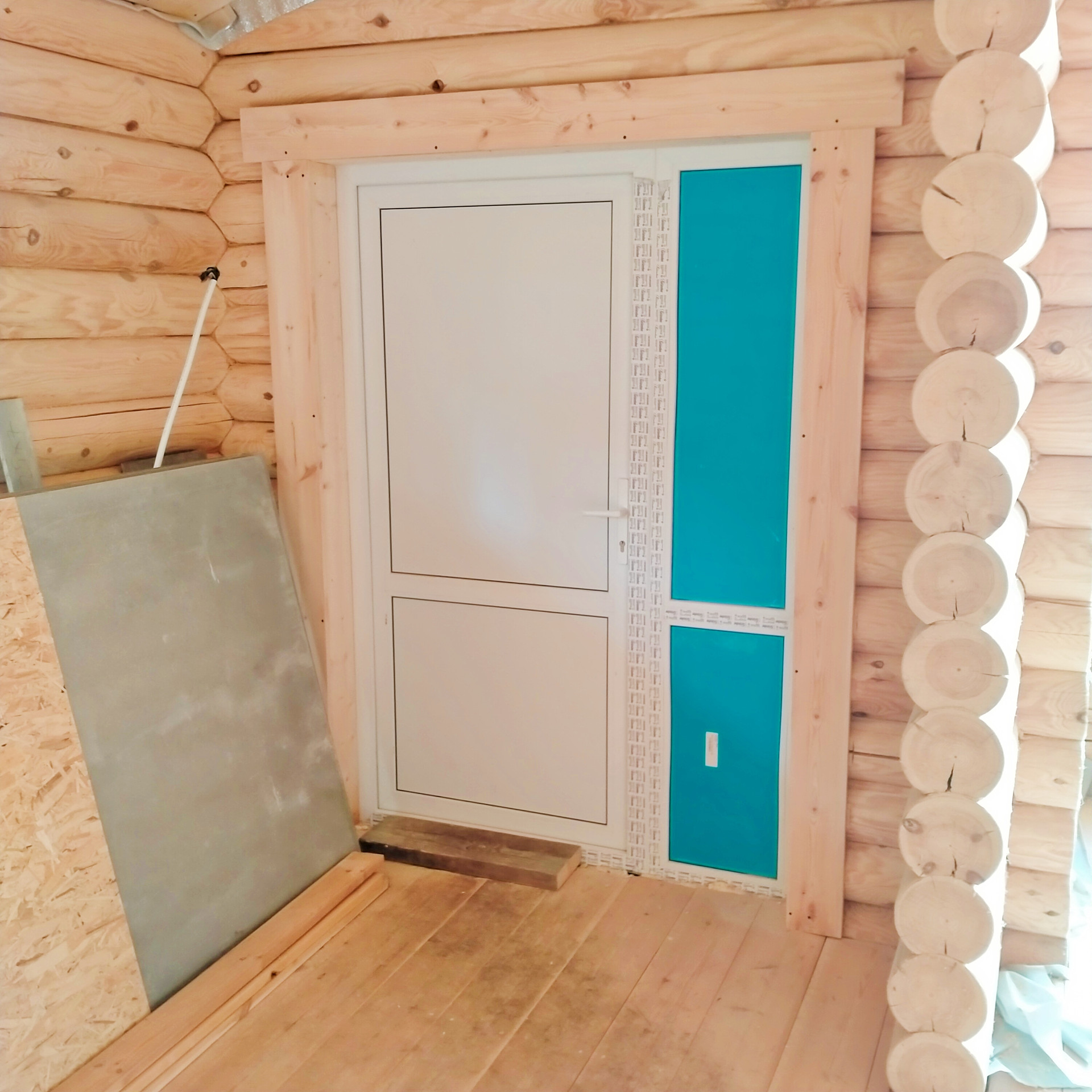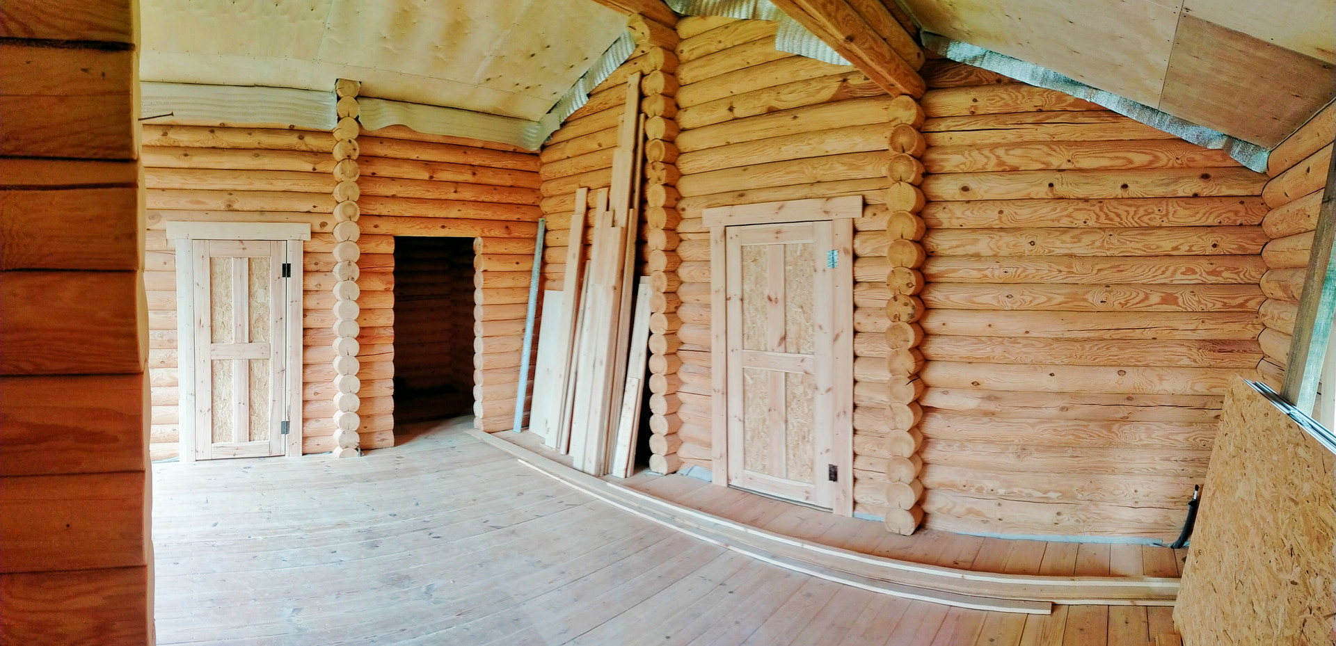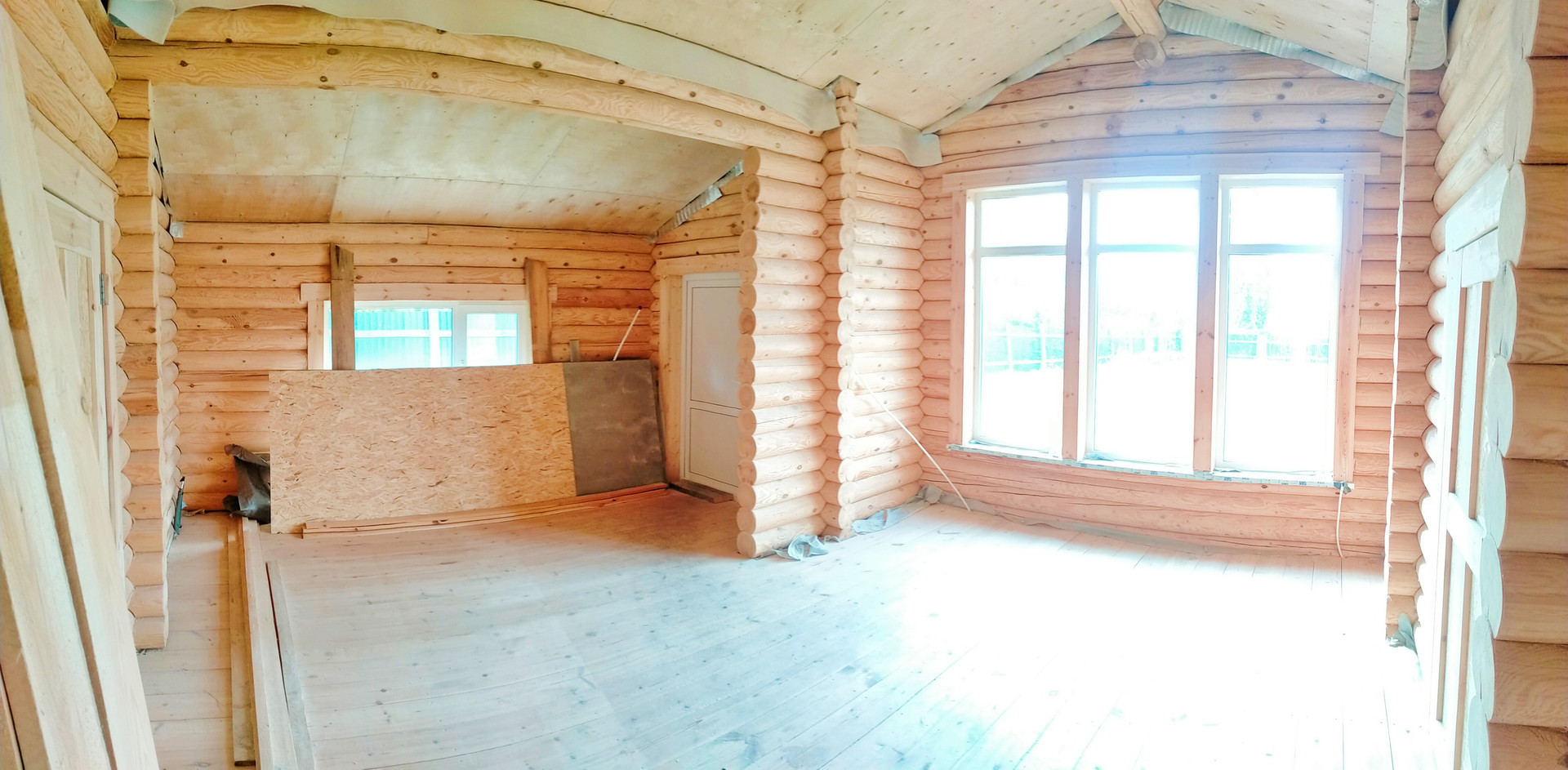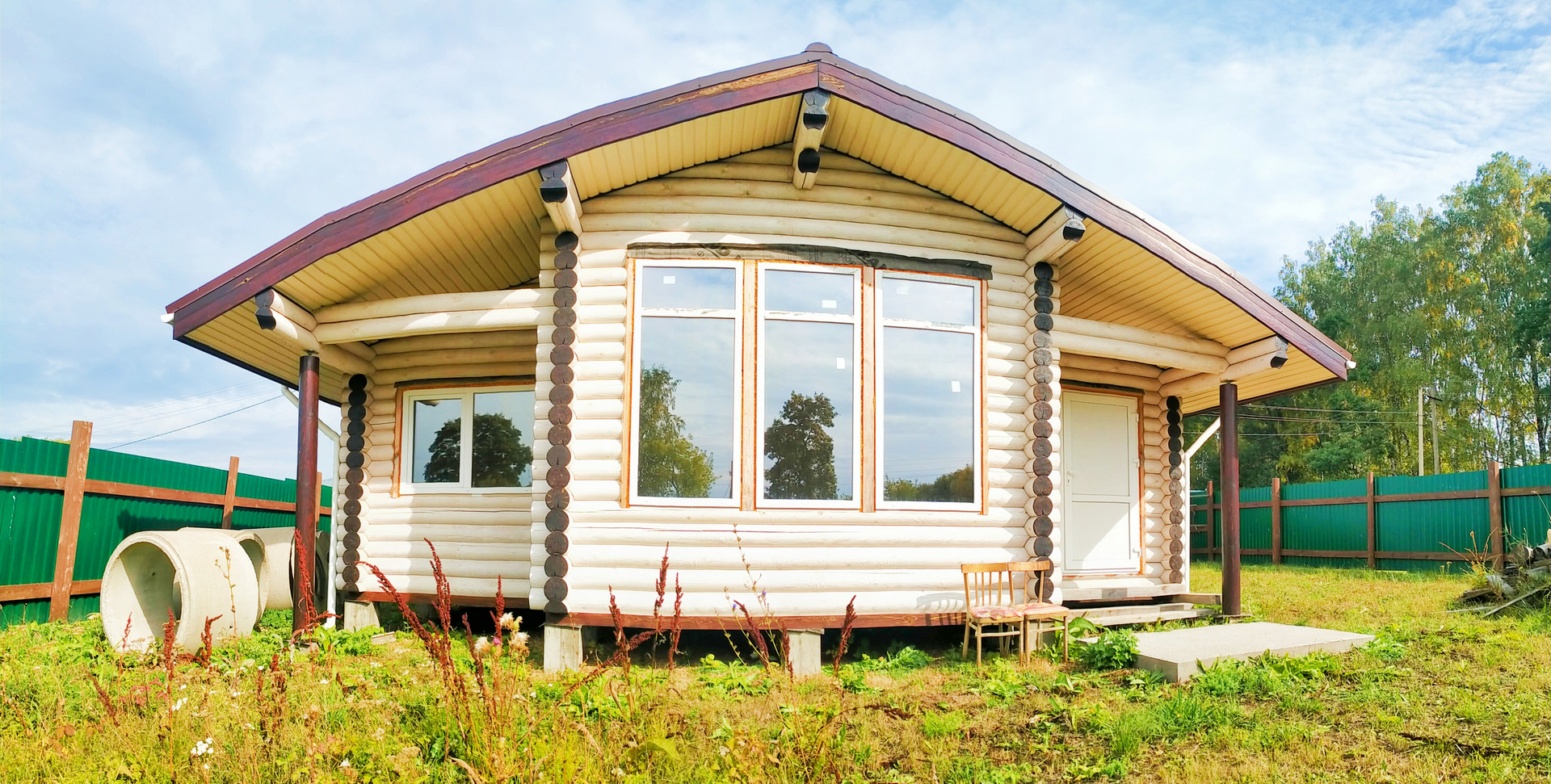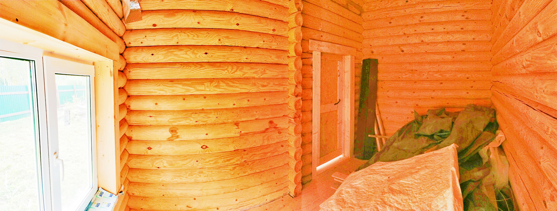 Дом: бревно 200 ( отстоялся, установлены окна ,двери)