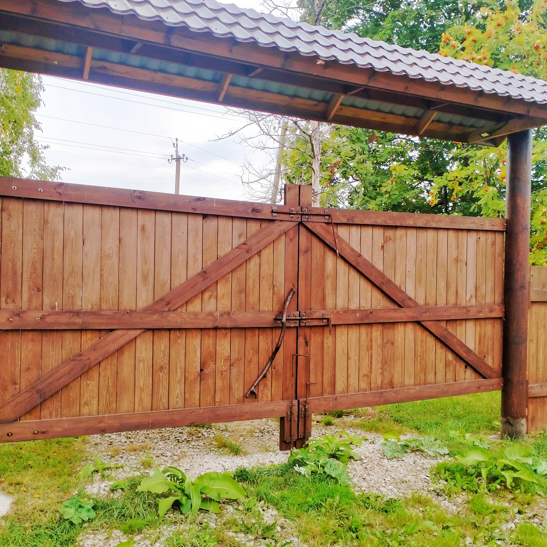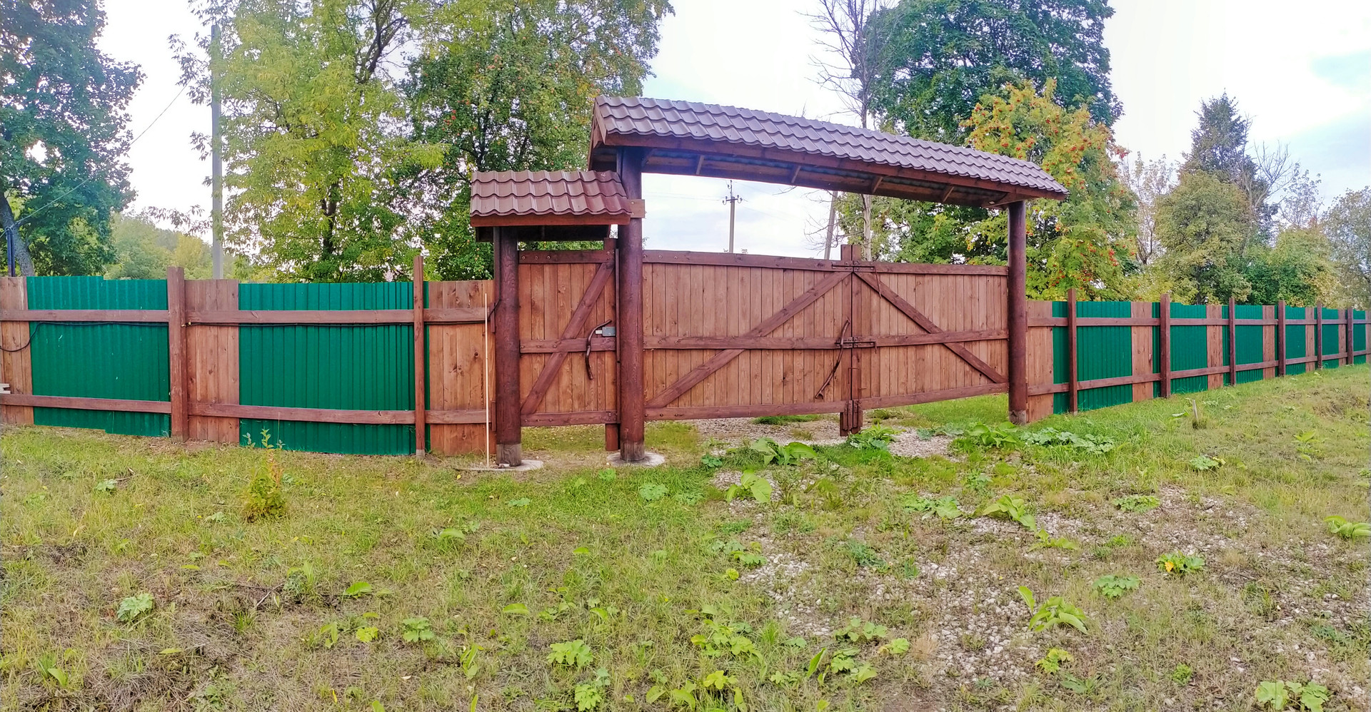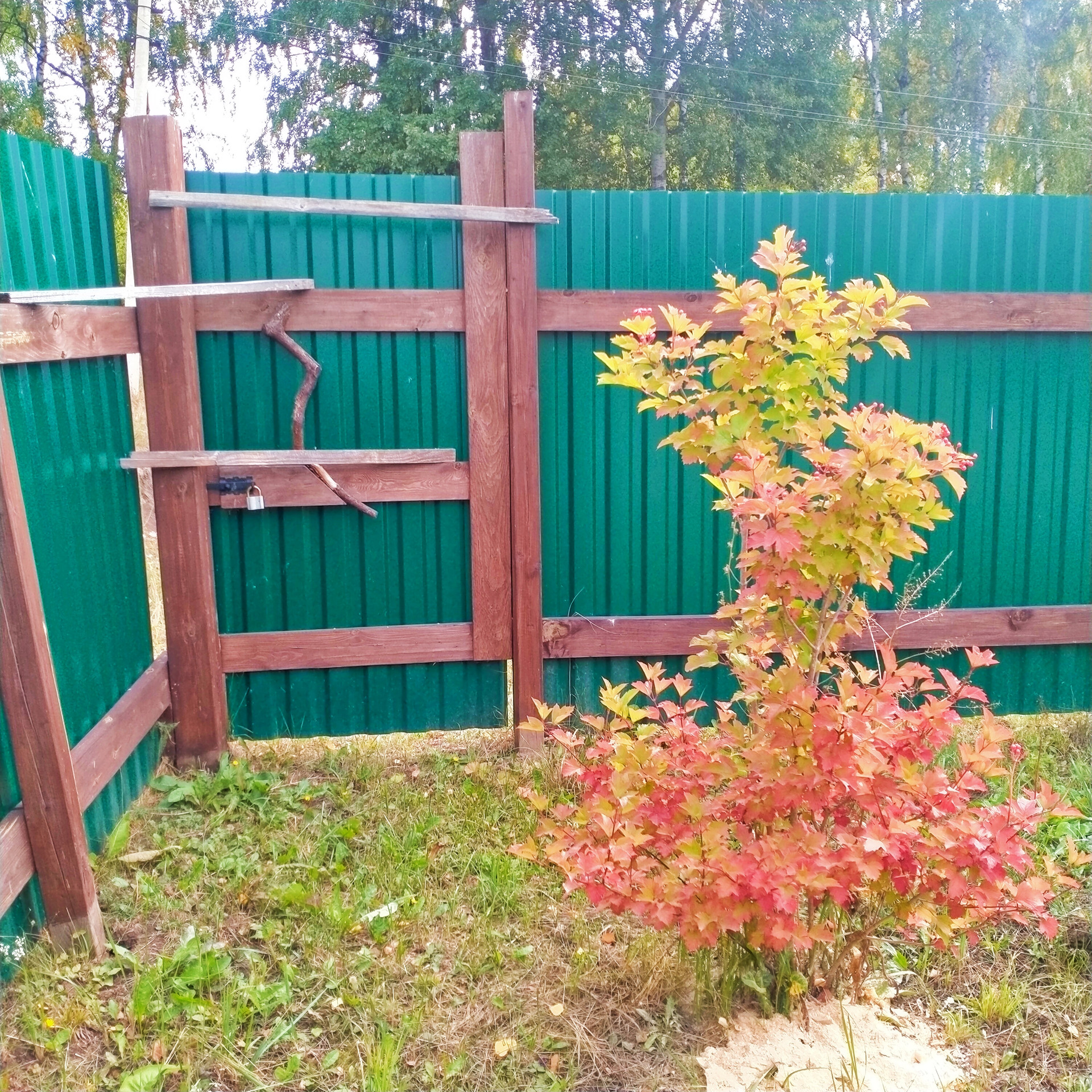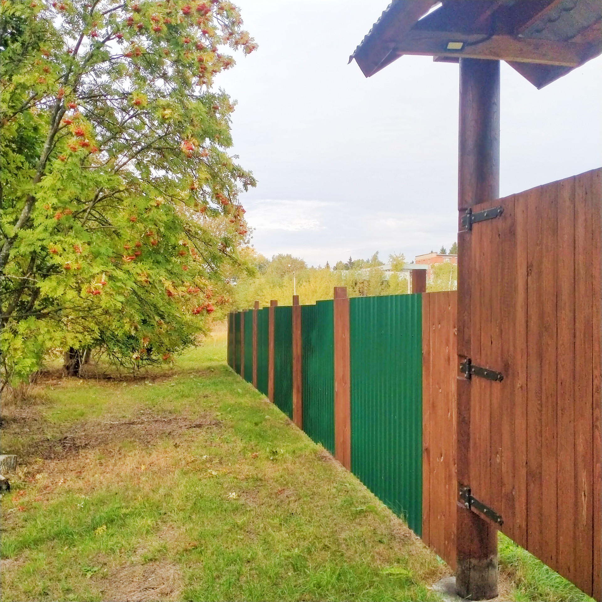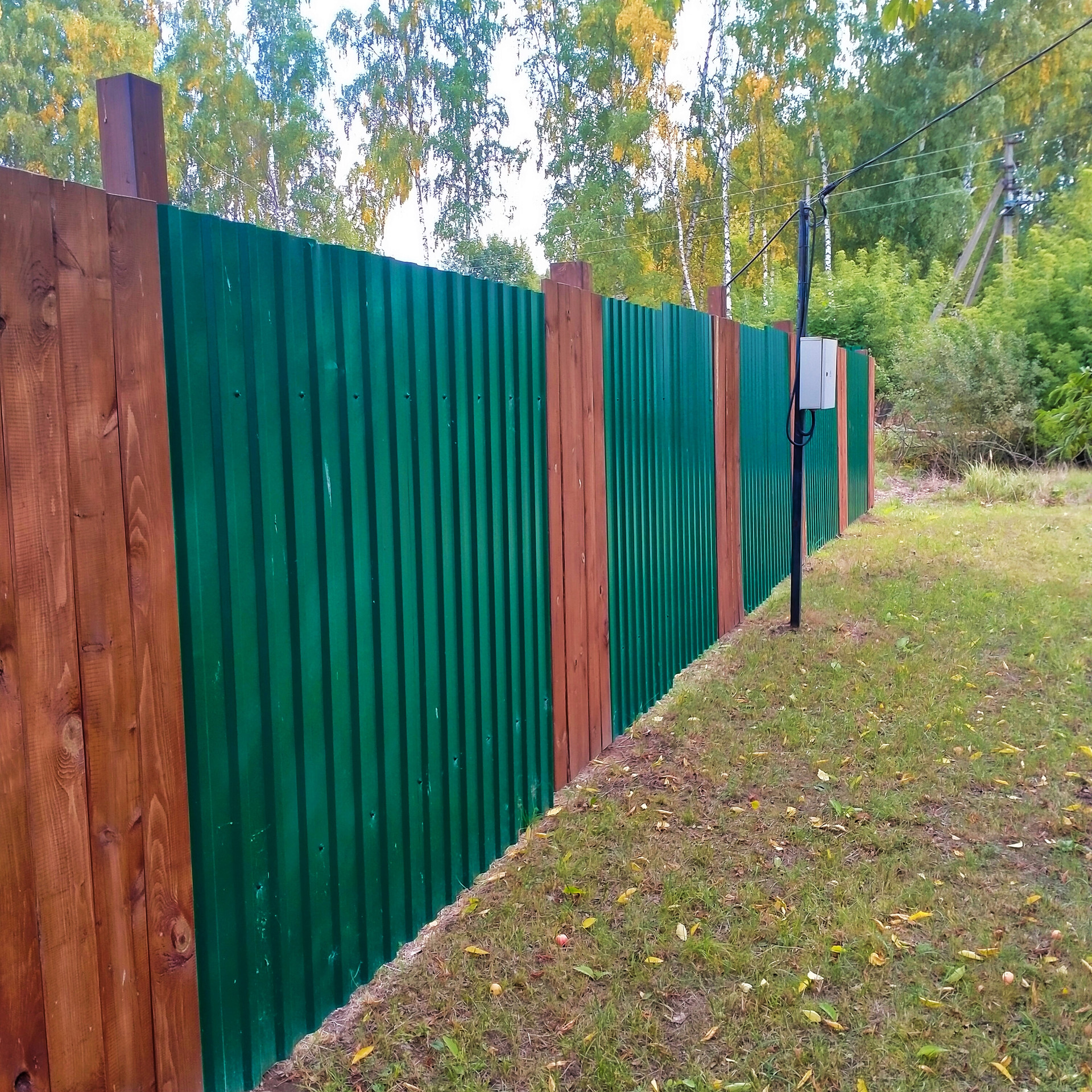 Участок огорожен ( комбинированный забор профлист + дерево)!