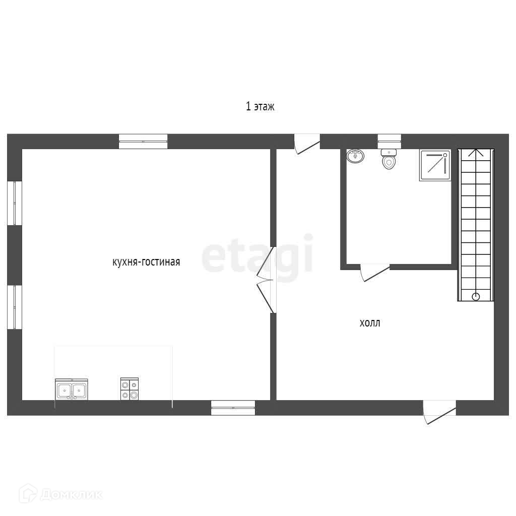 На первом этаже расположены - просторная кухня -гостиная , санузел , холл .