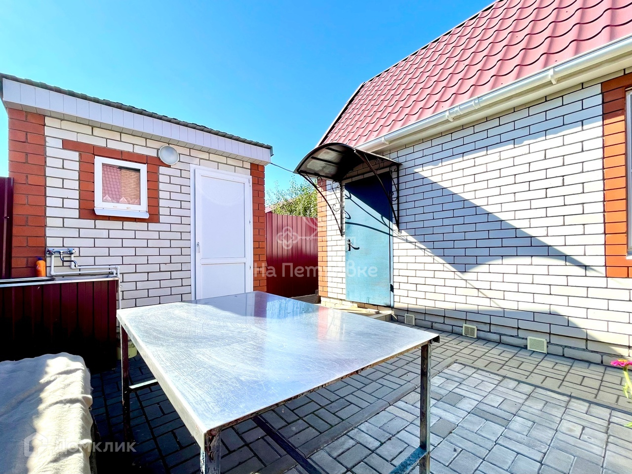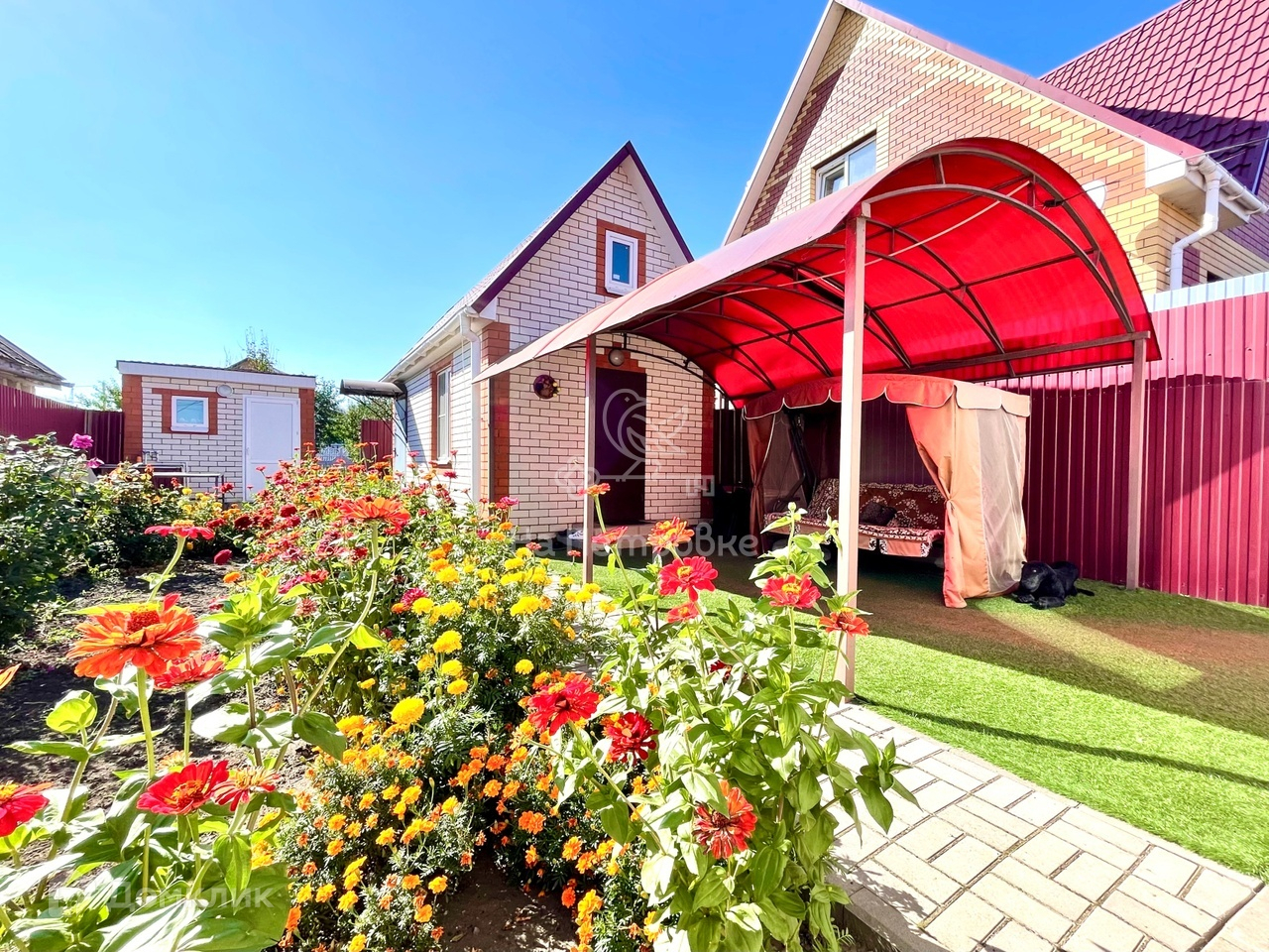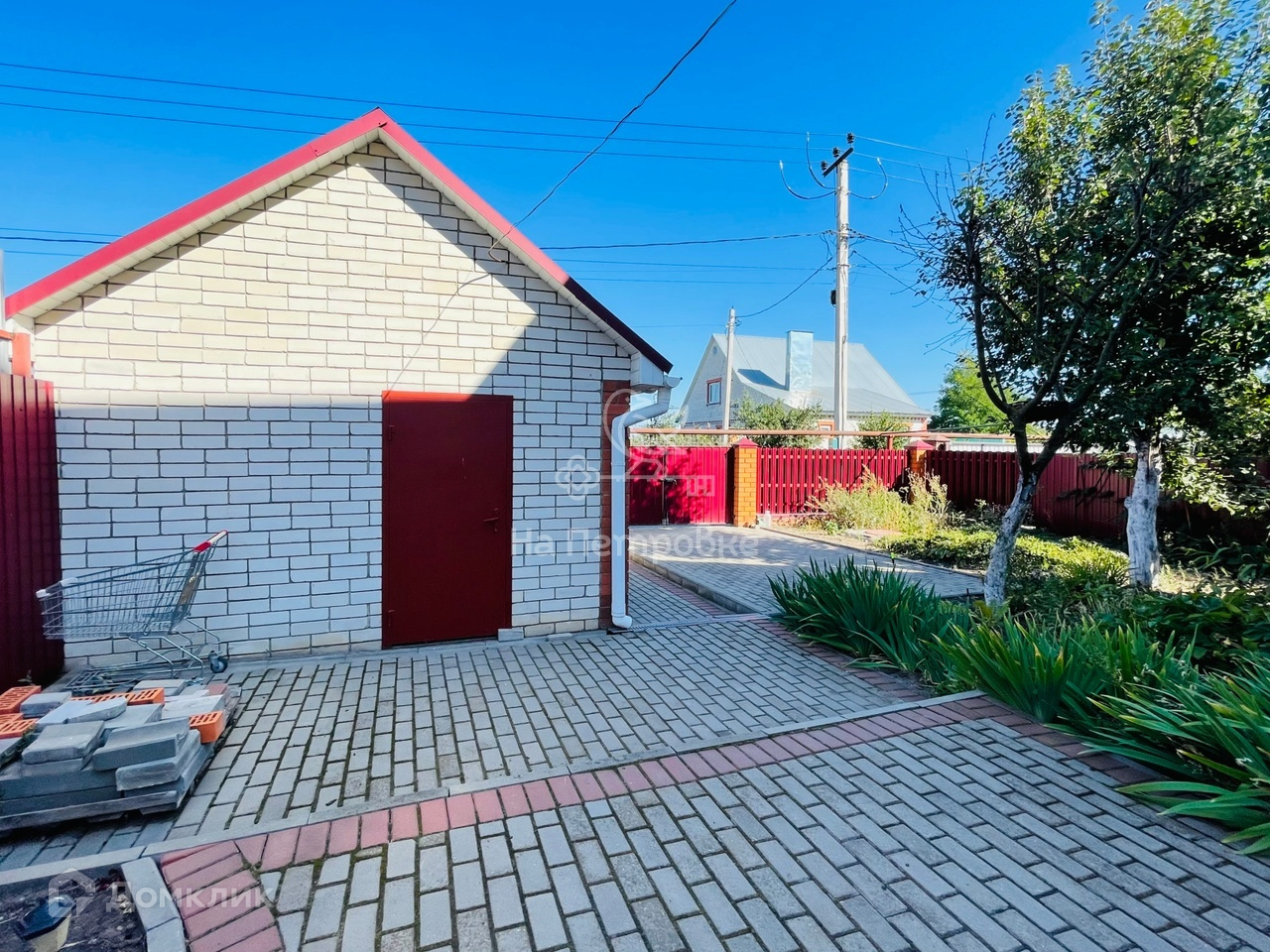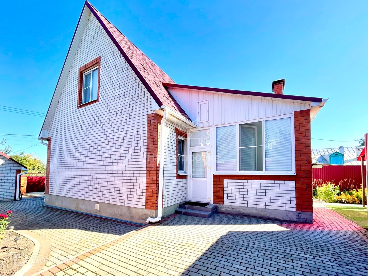 Также, на участке имеется гараж, летняя кухня с кладовой комнатой, навес, душевая комната с бойлером и летний туалет. Все строения отделаны облицовочным кирпичом. Периметр участка огорожен новым забором из профлиста. Имеются ворота и площадка для заезда автомобиля.