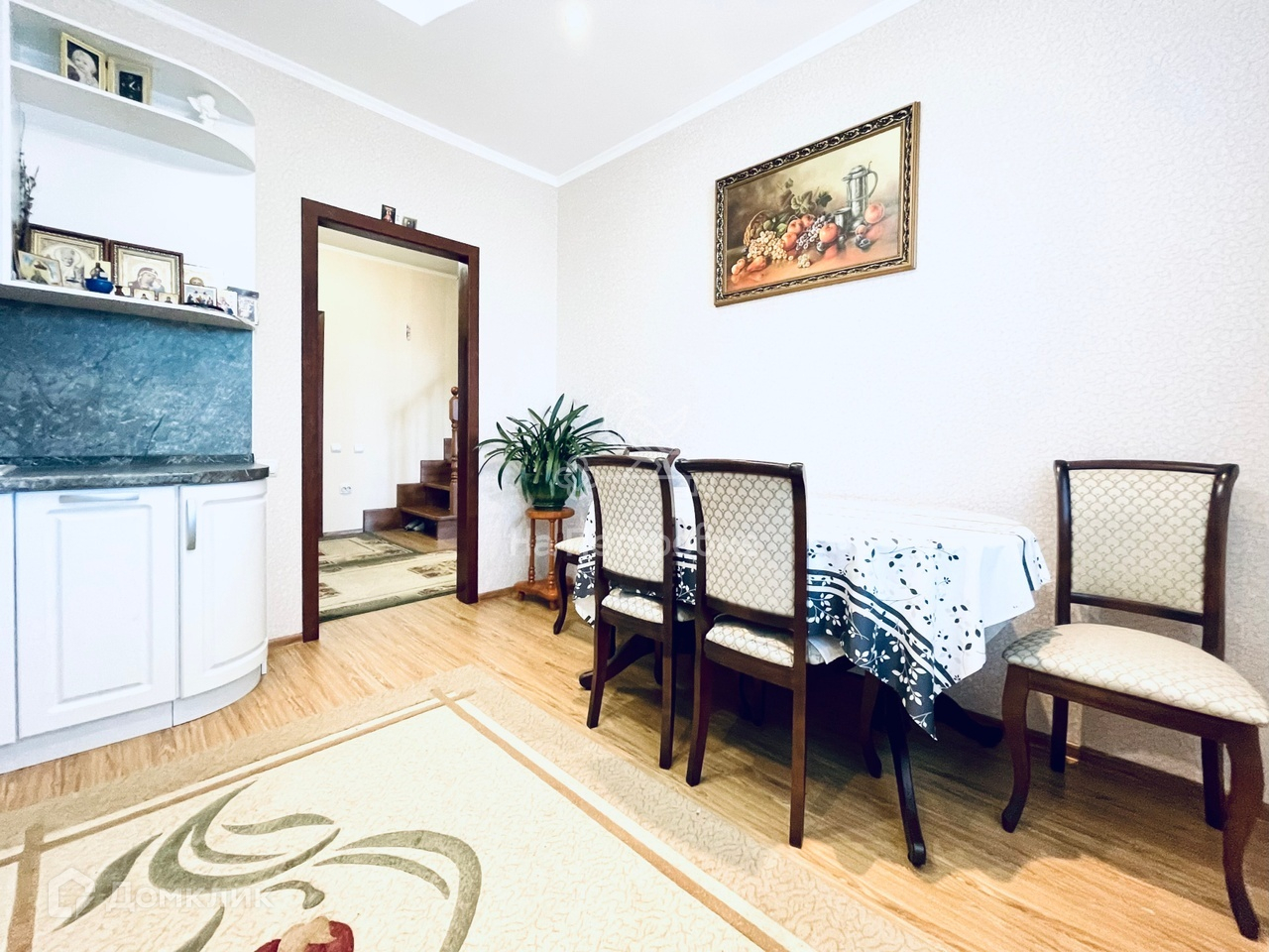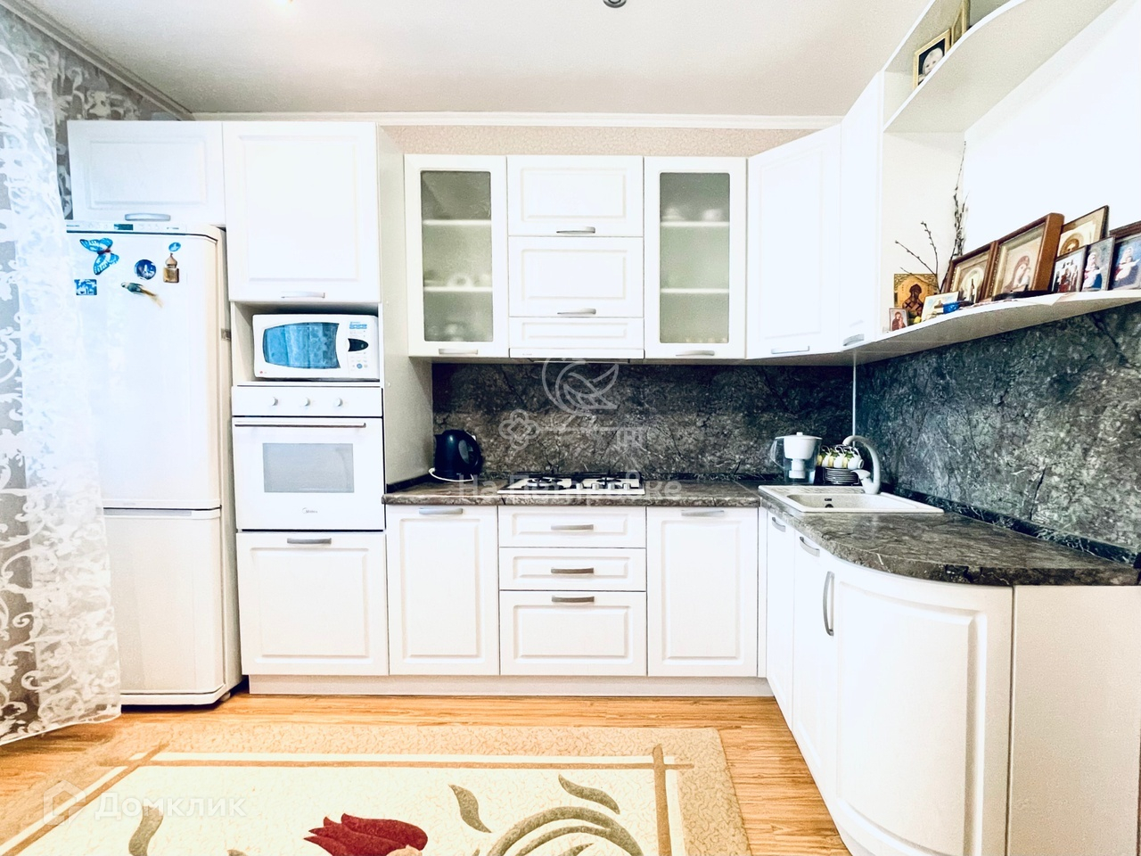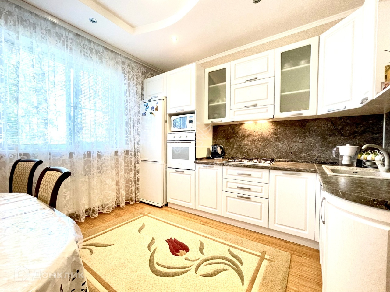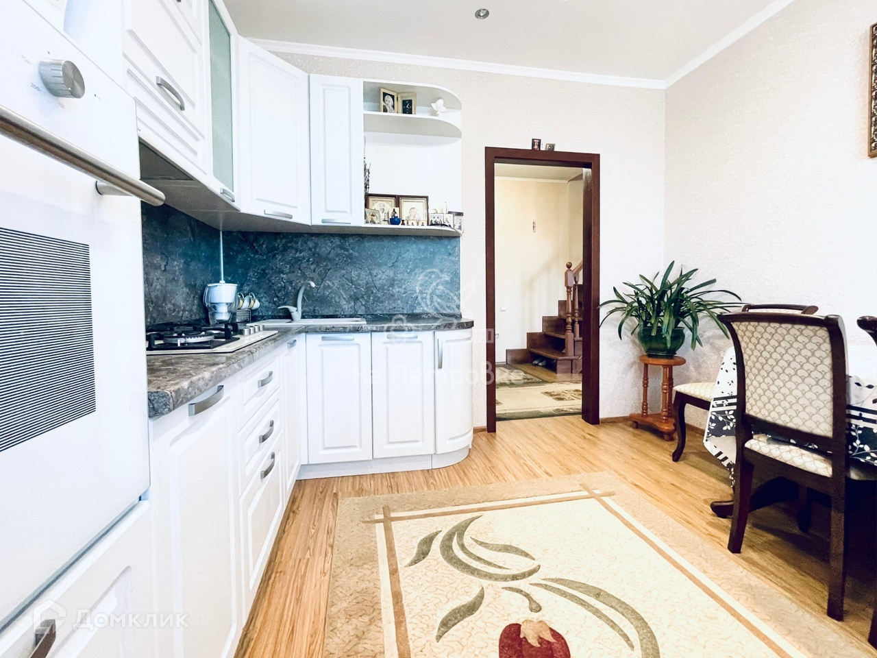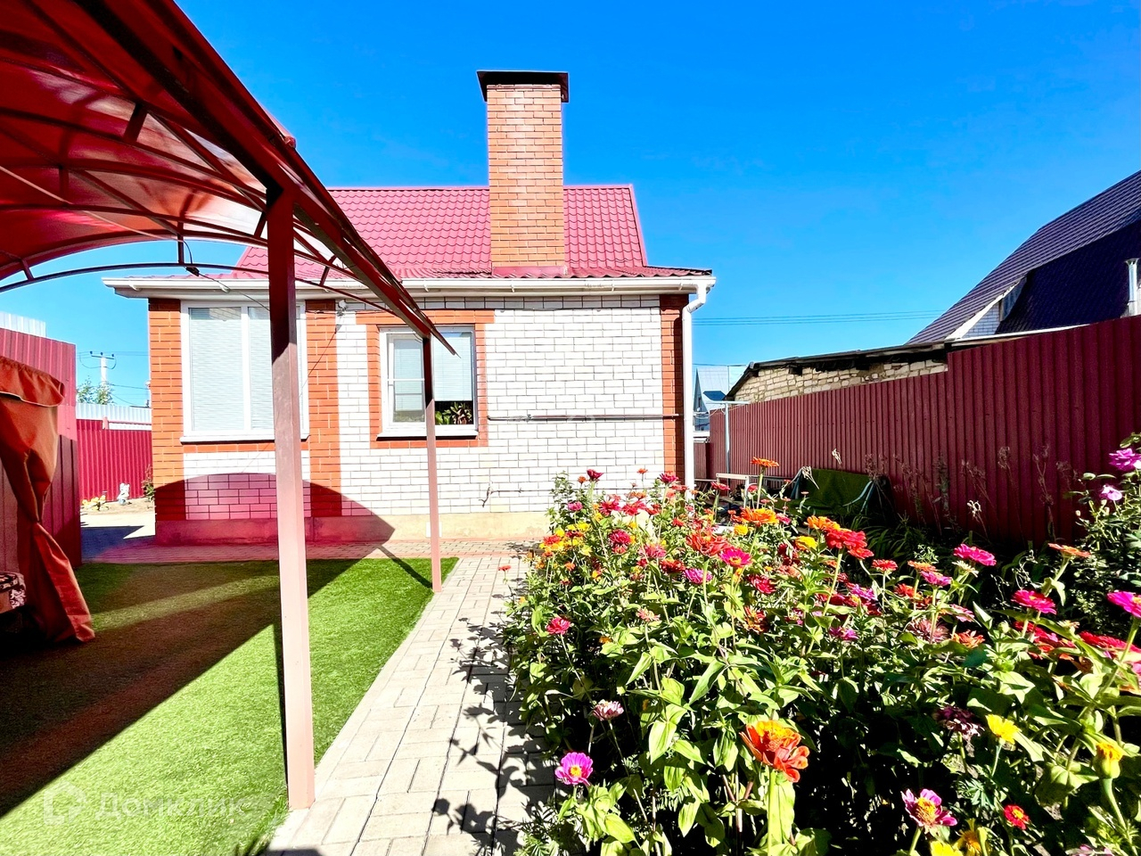 Также, на участке имеется гараж, летняя кухня с кладовой комнатой, навес, душевая комната с бойлером и летний туалет. Все строения отделаны облицовочным кирпичом. Периметр участка огорожен новым забором из профлиста. Имеются ворота и площадка для заезда автомобиля.