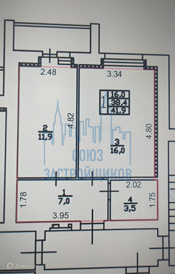 Общая площадь 41.9 м2