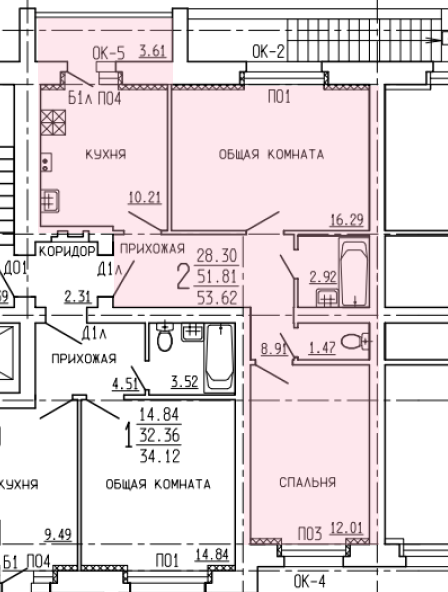 Общая площадь 52.3 м2