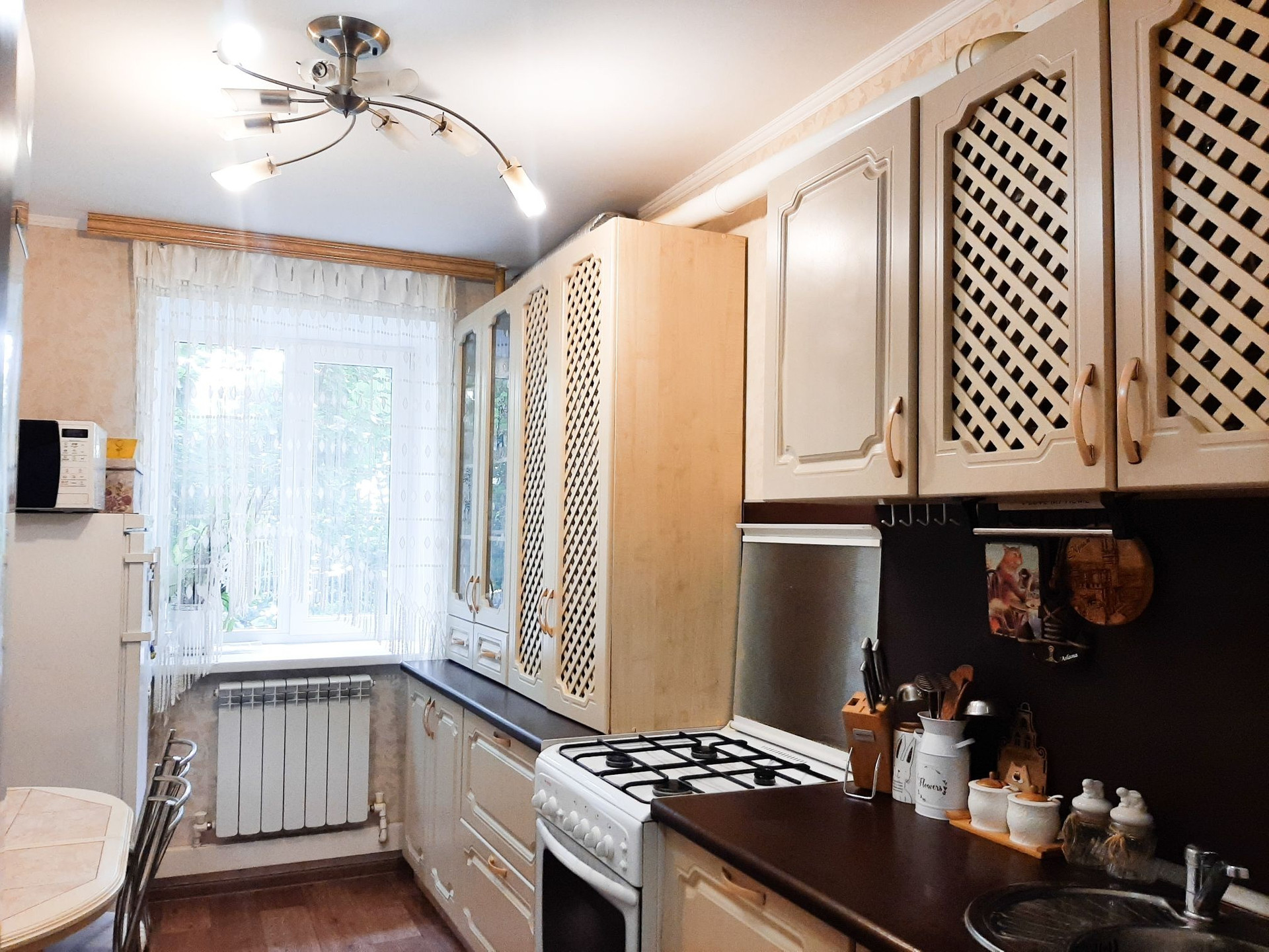Из мебели остаётся кухонный гарнитур.