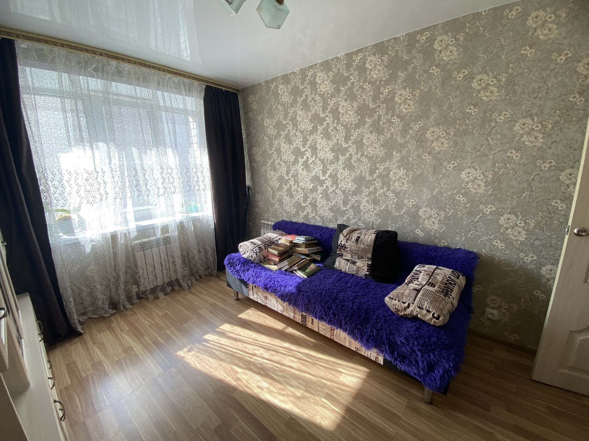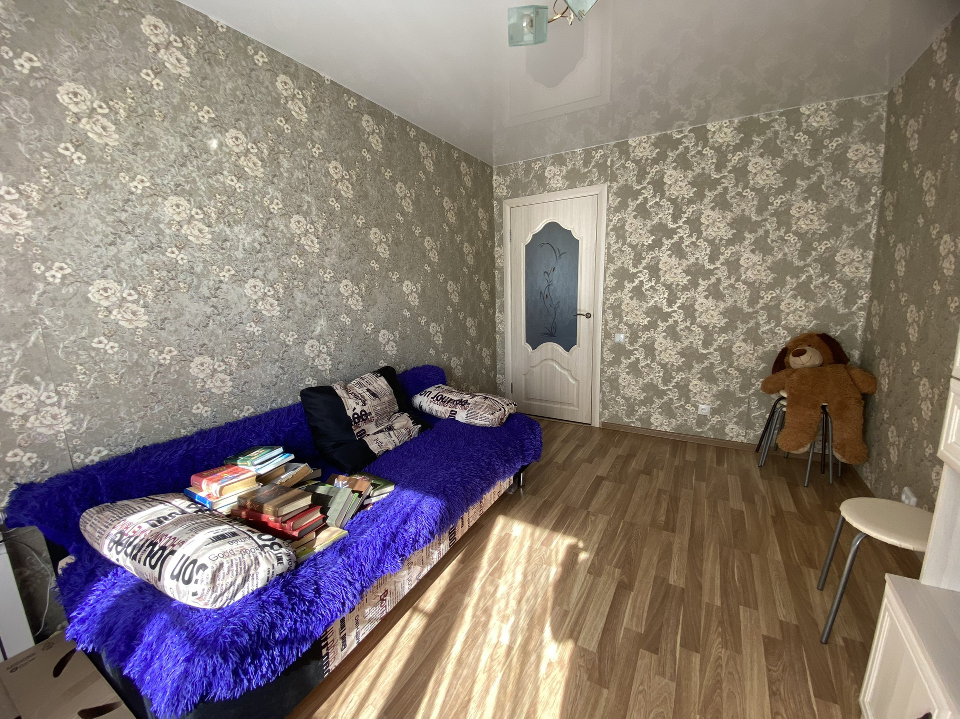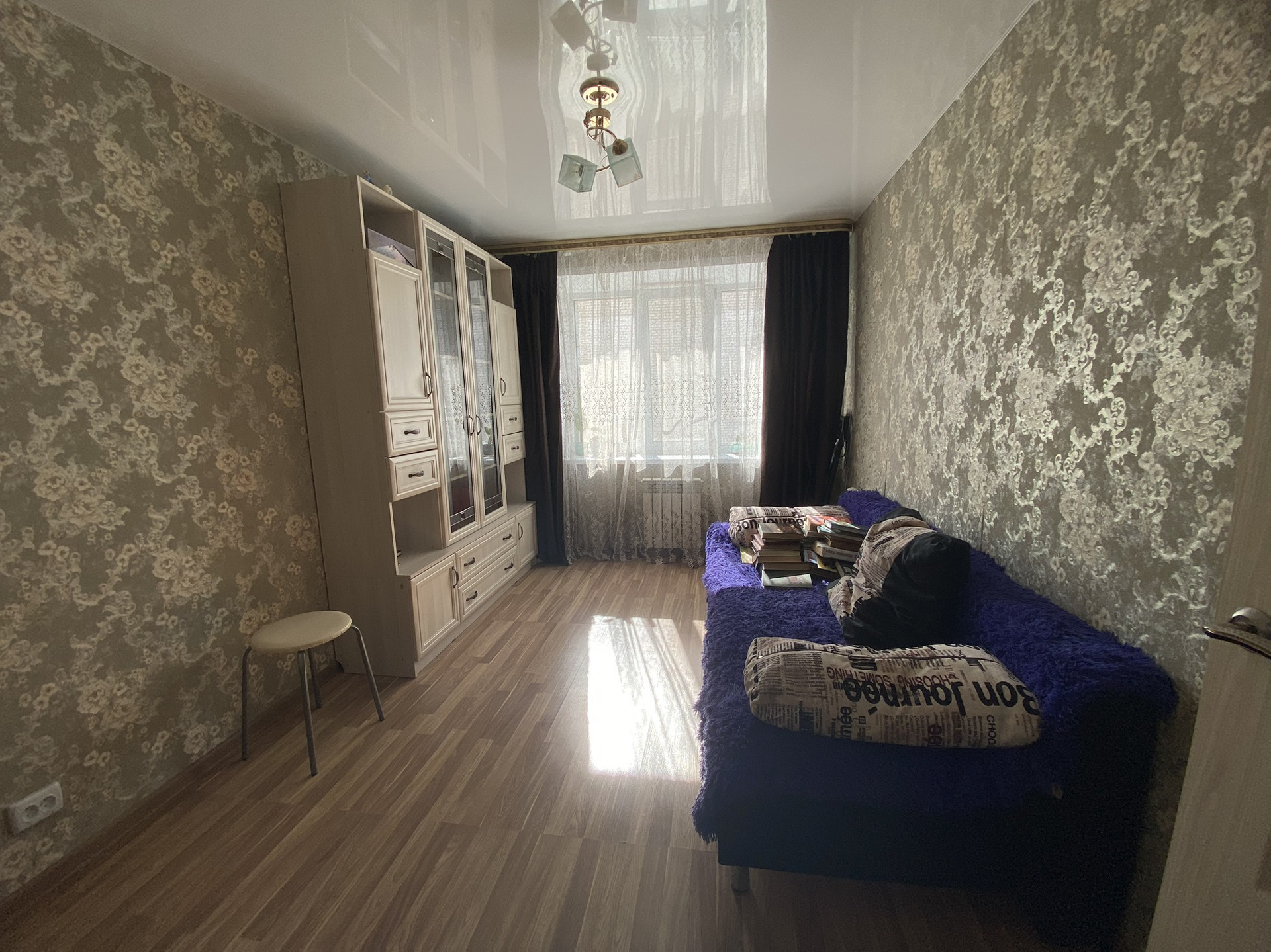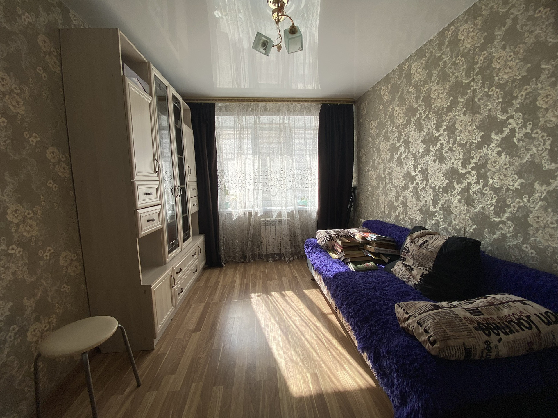 На стенах обои;