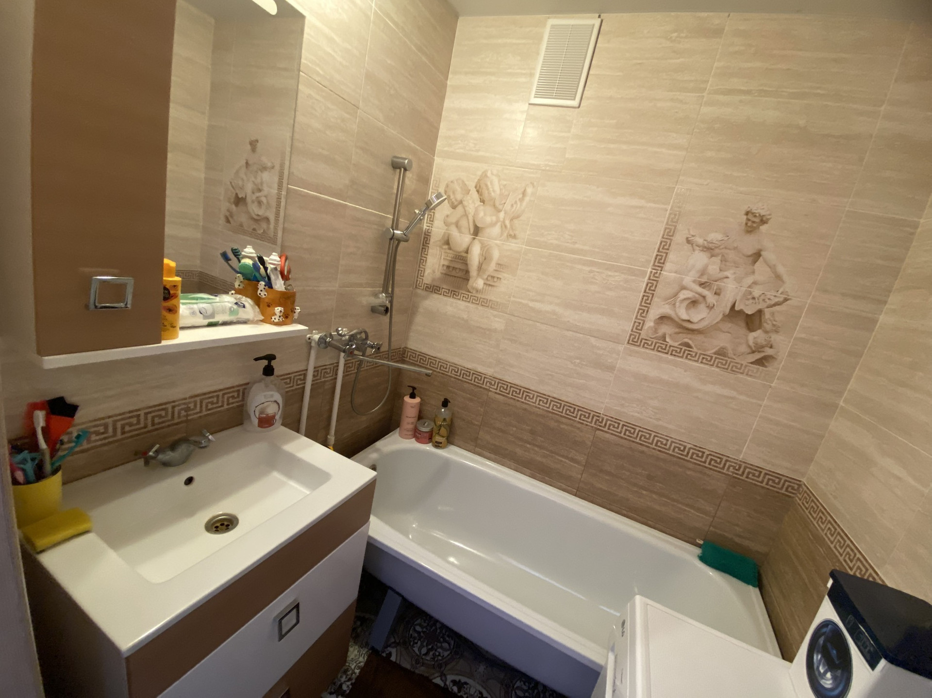 Сан.узлы отделаны плиткой.