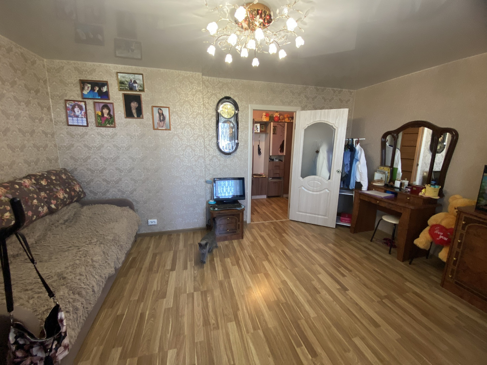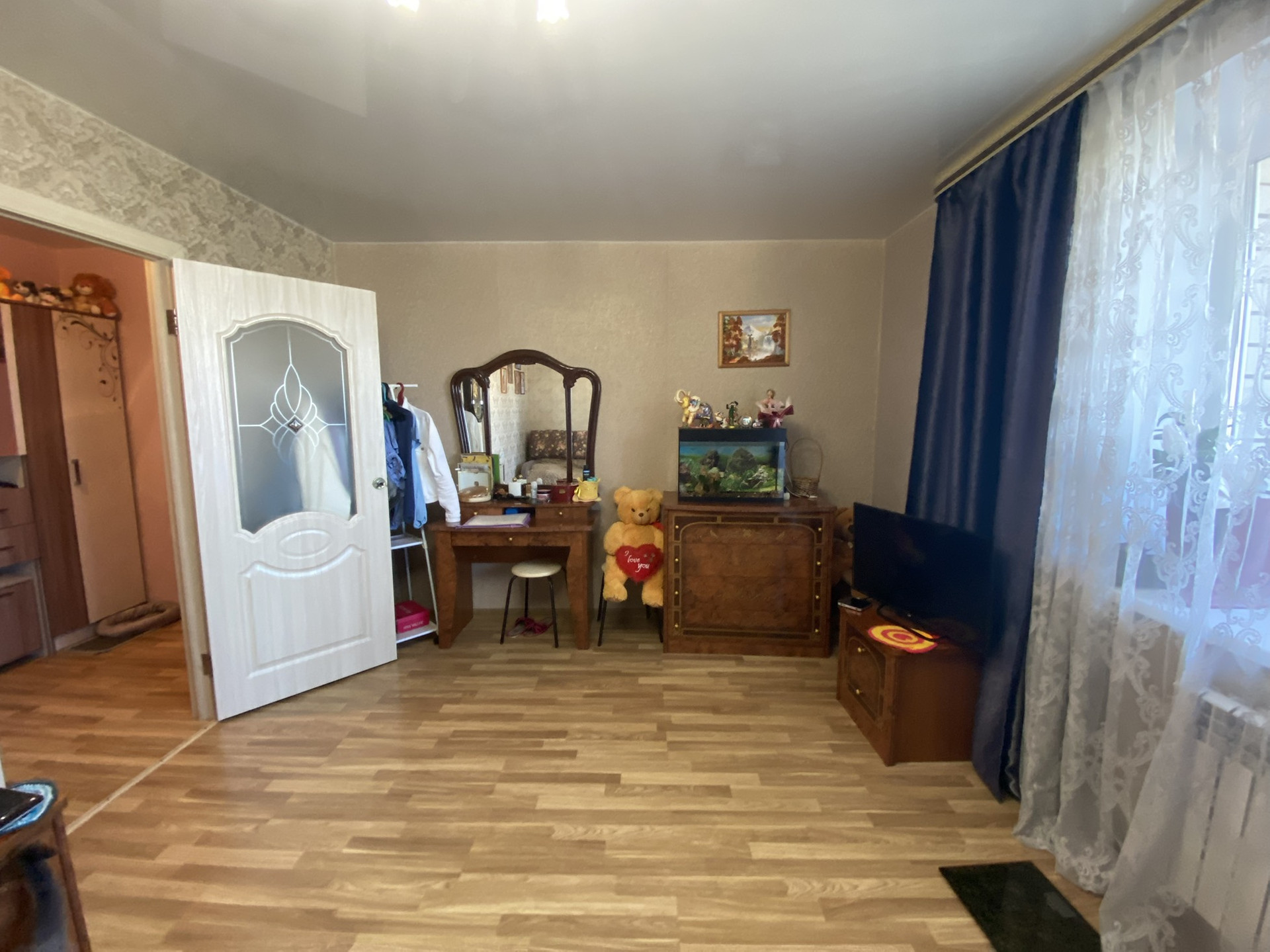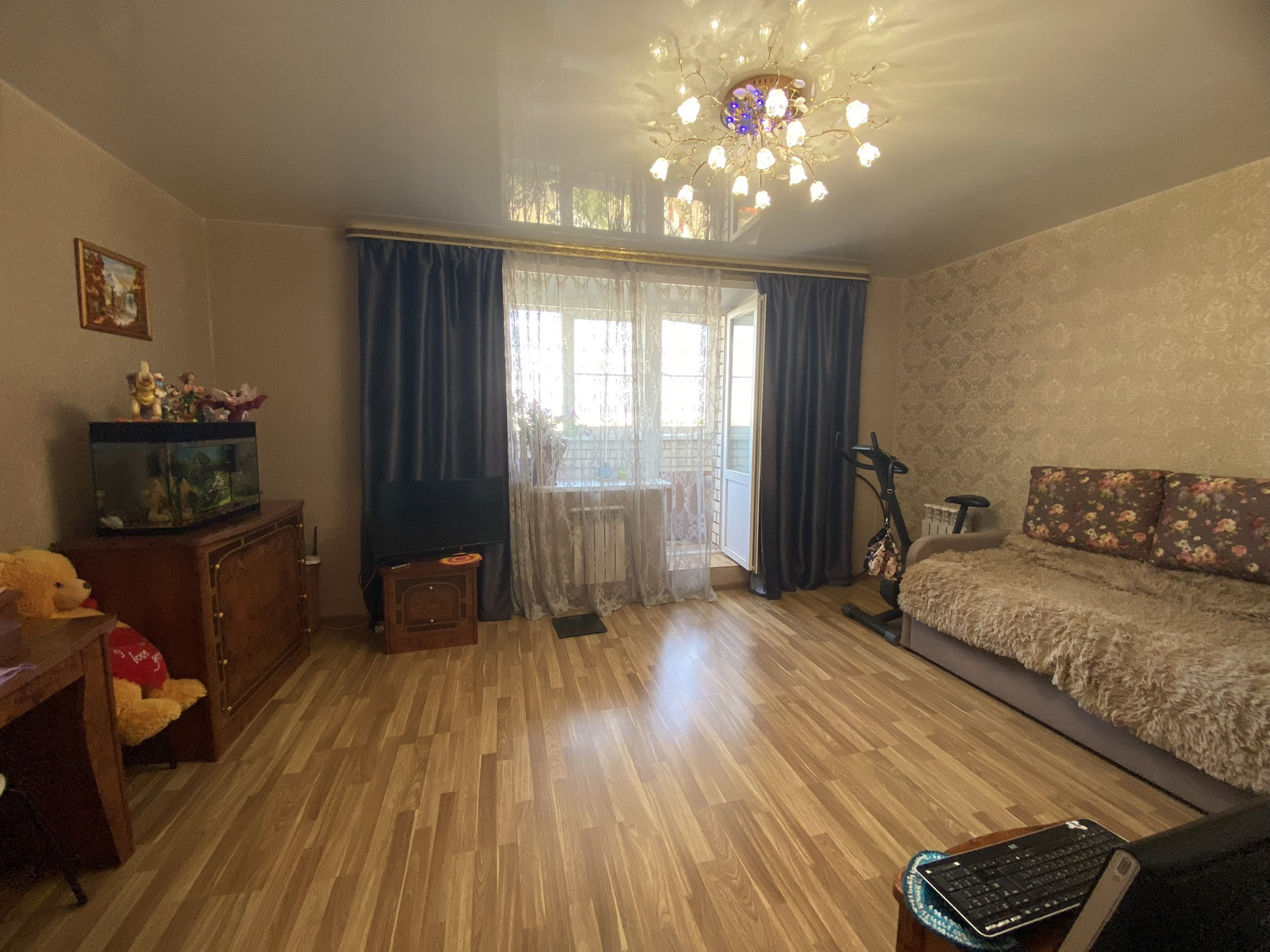 — На полу ламинат;