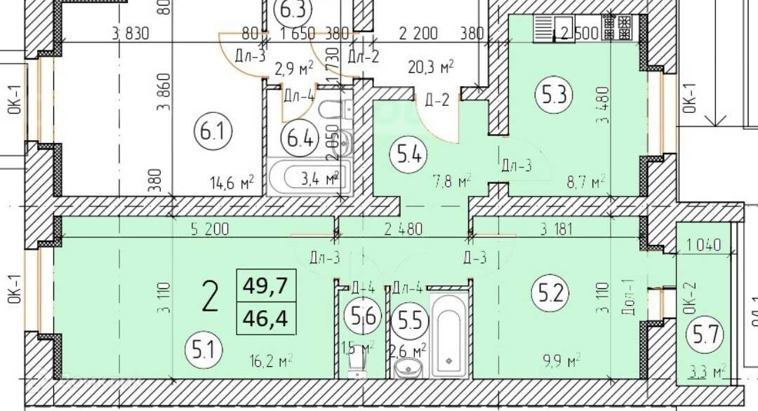 Общая площадь 50 м2