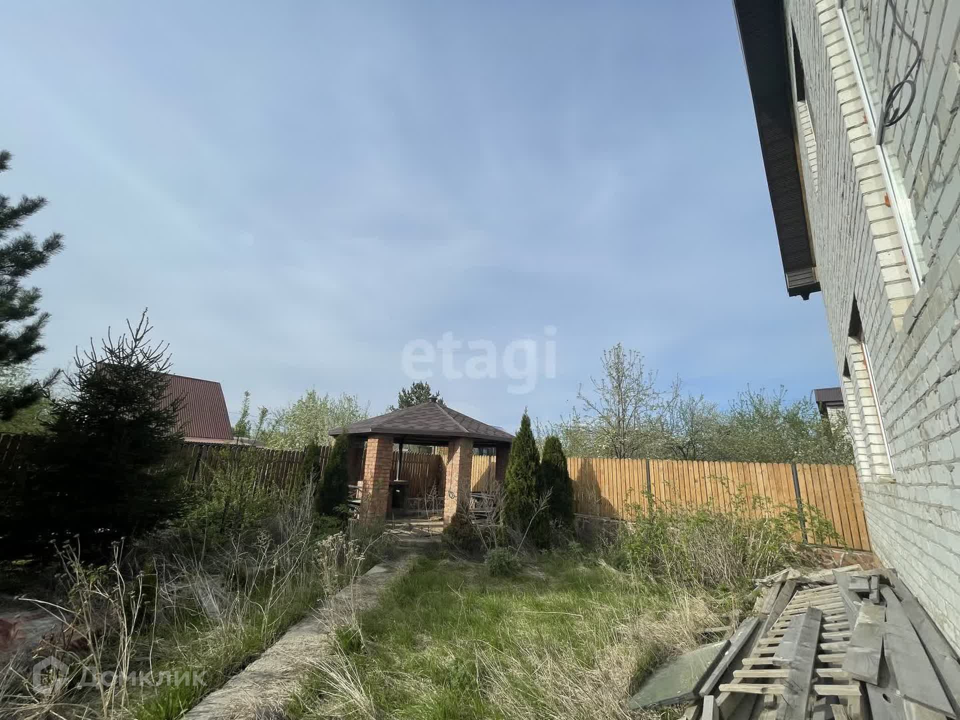 Ровный участок 6 соток,на территории беседка из красного кирпича крыша современная мягкая кровля,баня из сруба,подготовлено снование для бассейна,кирпичный забор с элементами декора из дерева,на участке высажены туи и сосны, плодовые деревья.