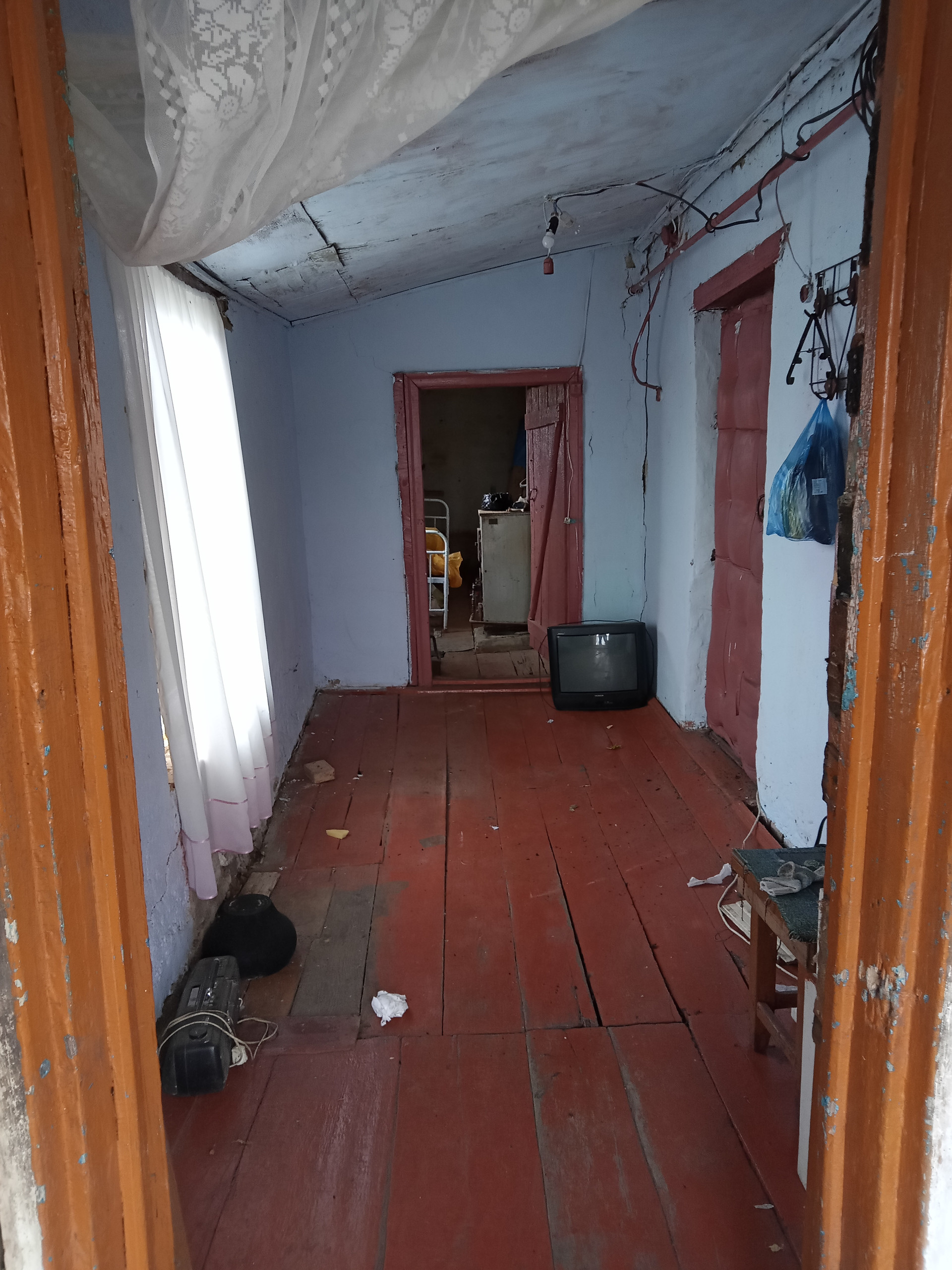 Но разрушающийся дом в какой то степени и плюс, из этого кирпича был построен туалет), можно частично использовать этот кирпич на какие то другие постройки.