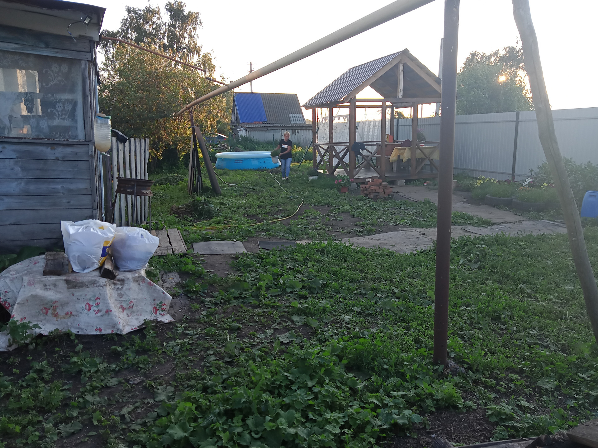 Продаю участок 12 соток, шириной 40 метров, передняя часть огорожена забором из профнастила высотой 2 метра. Беседка размером 3 на 3 метра, есть централизованная вода, газ, электричество, асфальт до участка, подъезд в любое время года, земля чернозем, очень плодородная ( с пяти вёдер картошки выкапываем 80-90).