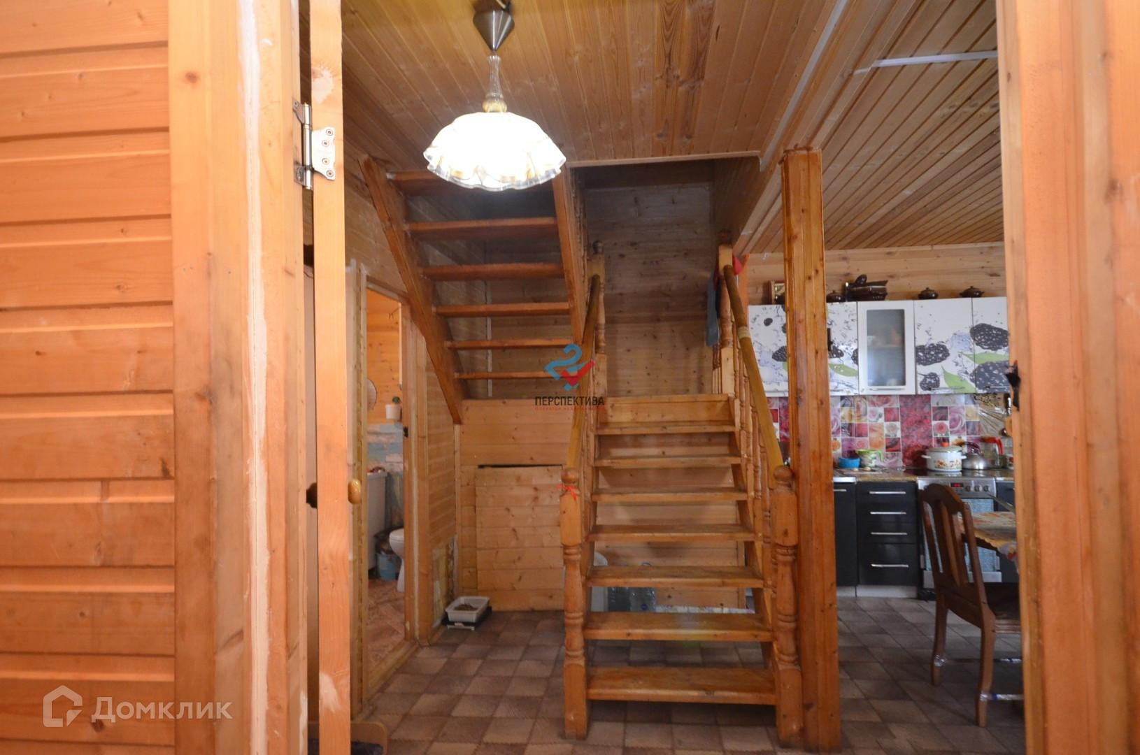На первом этаже дома кухня-гостиная, спальня, душевая кабина с санузлом.