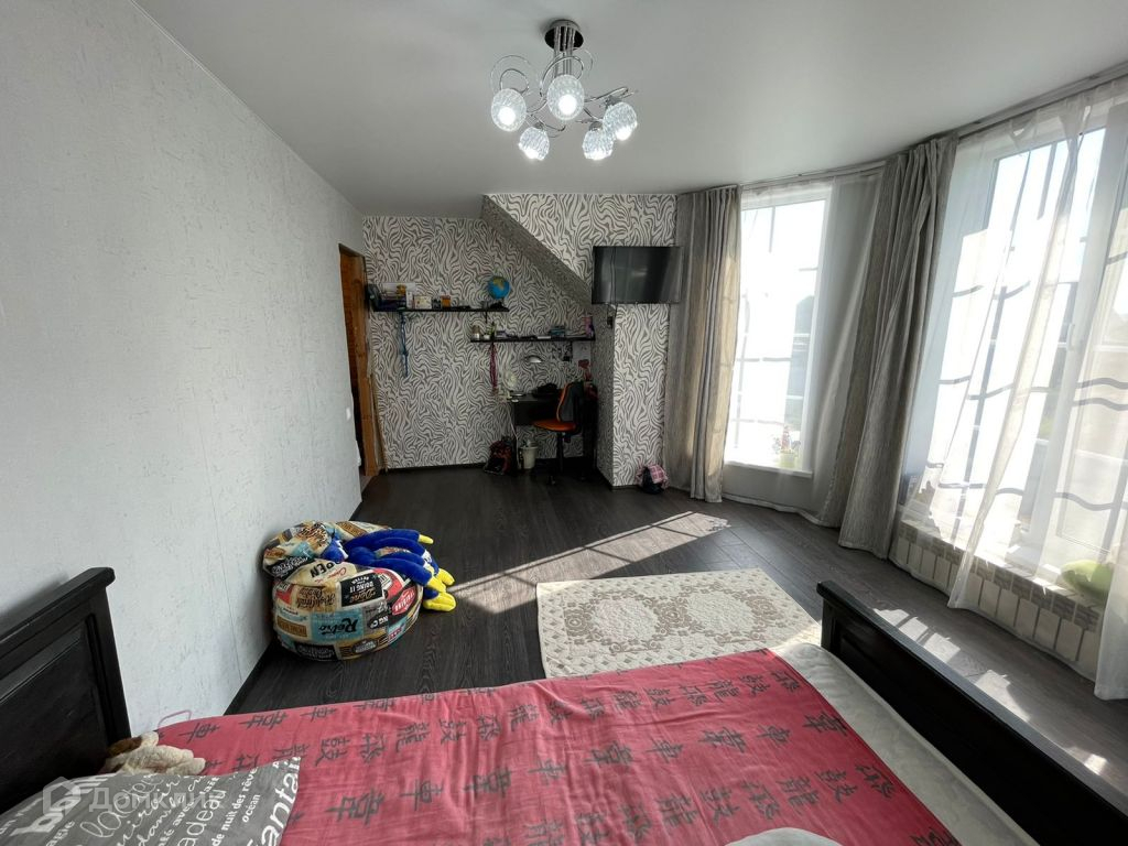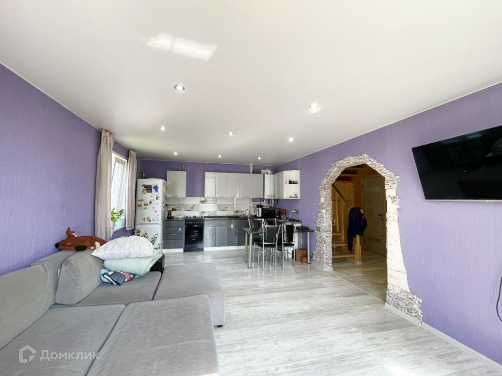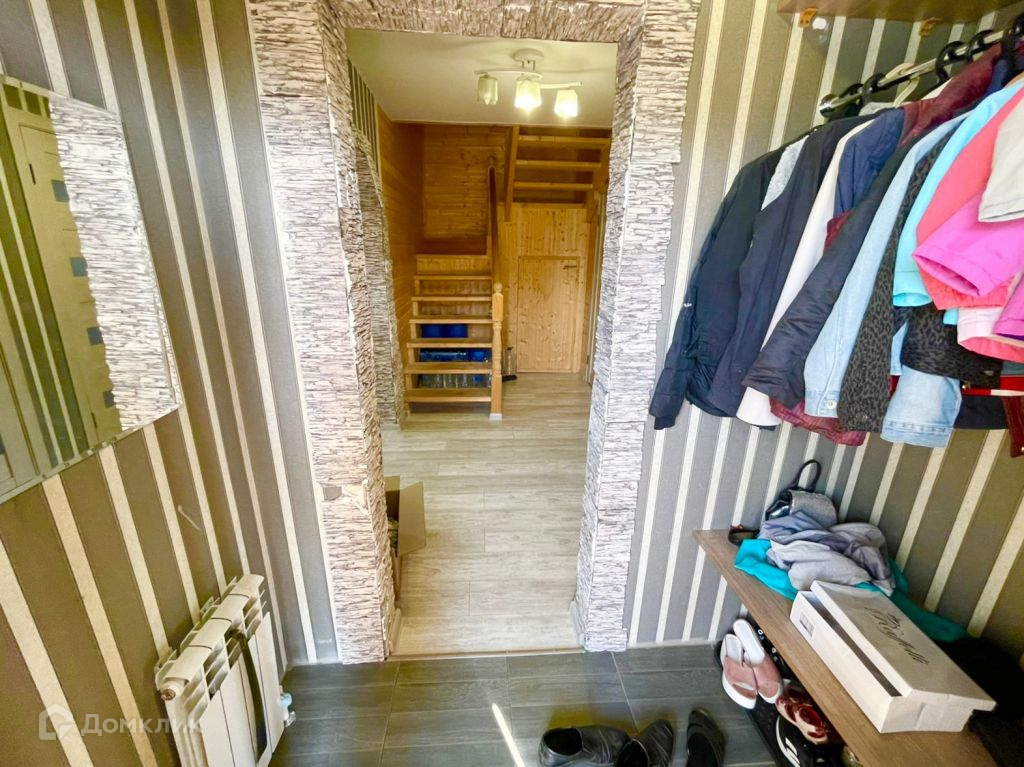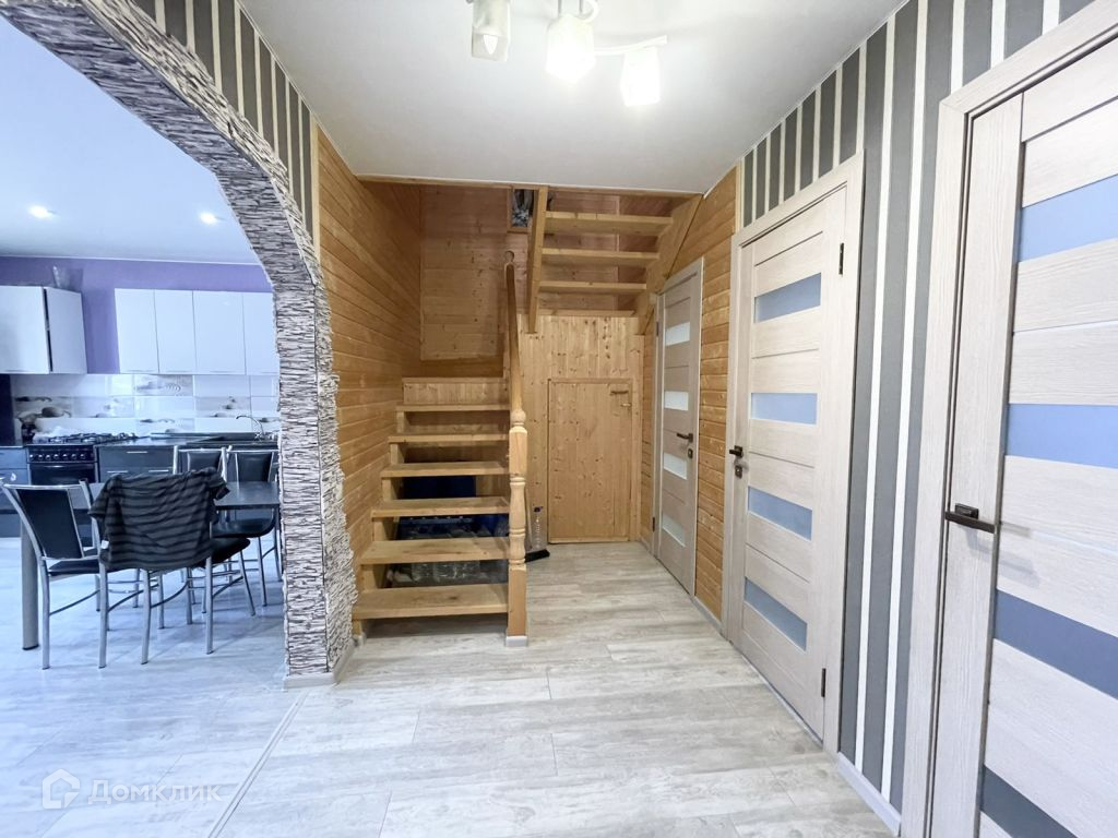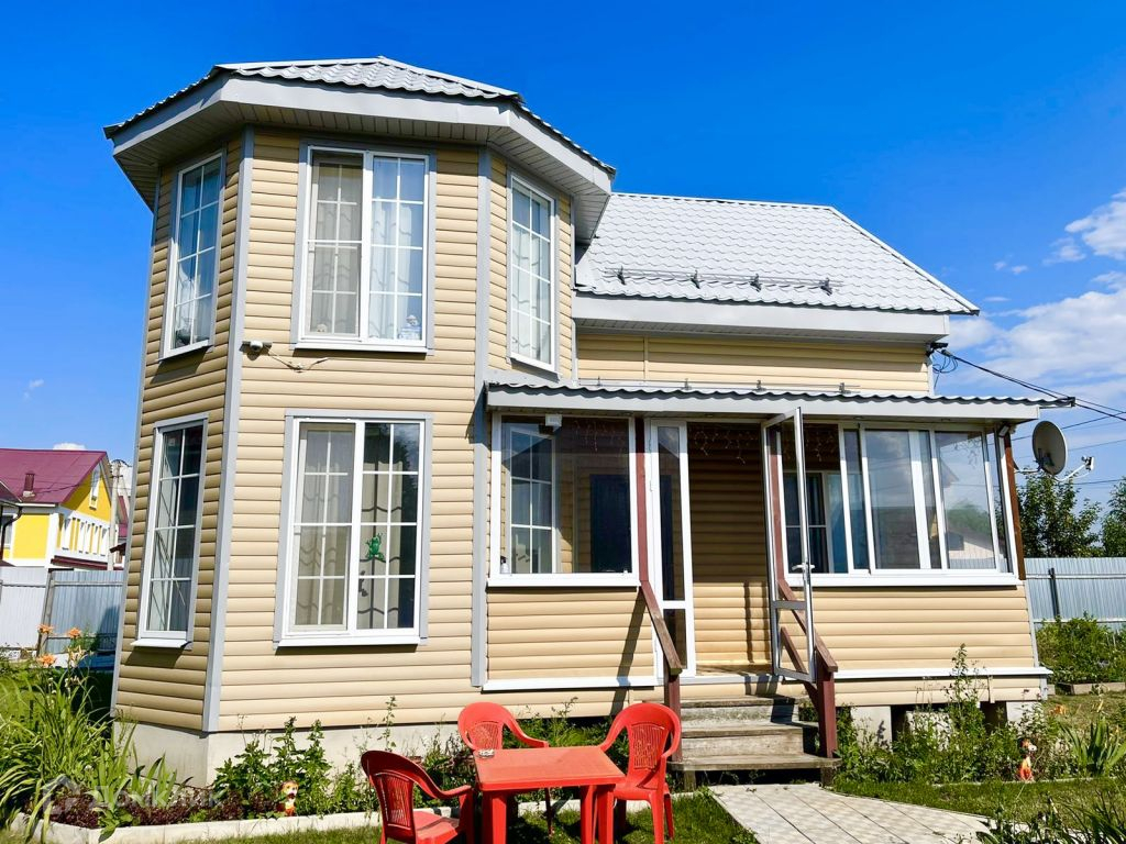 Планировка - крыльцо-веранда, тамбур, холл, раздельный с/у, спальня, кухня-гостиная. На втором этаже три комнаты (одна нуждается в отделке) и помещение под гардеробную или с/у. Отделка дома снаружи - сайдинг, внутри гипсокартон и вагонка, и где лестничный пролёт. Сзади дома пристроена крытая веранда.