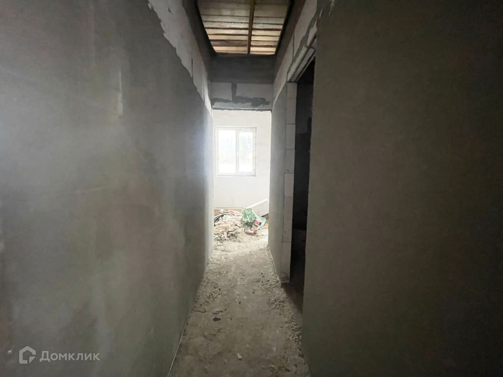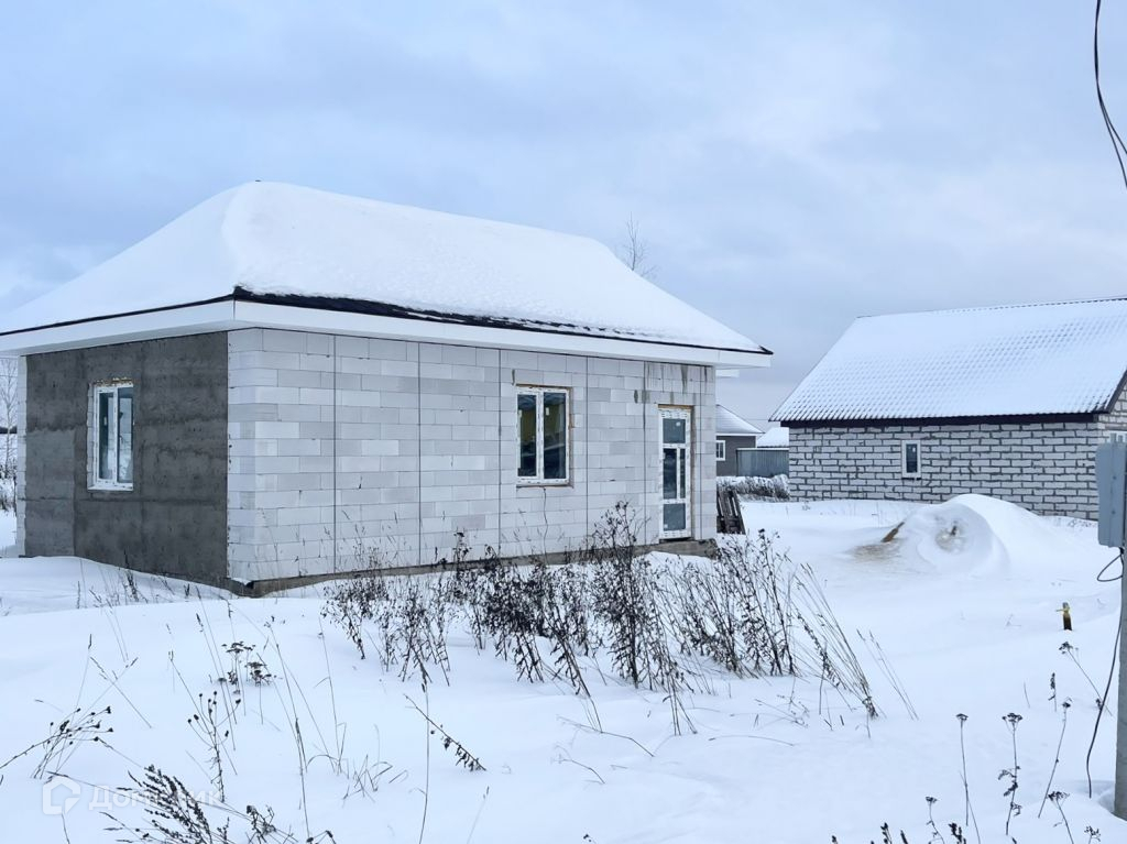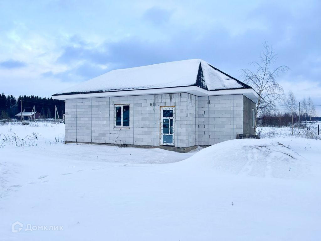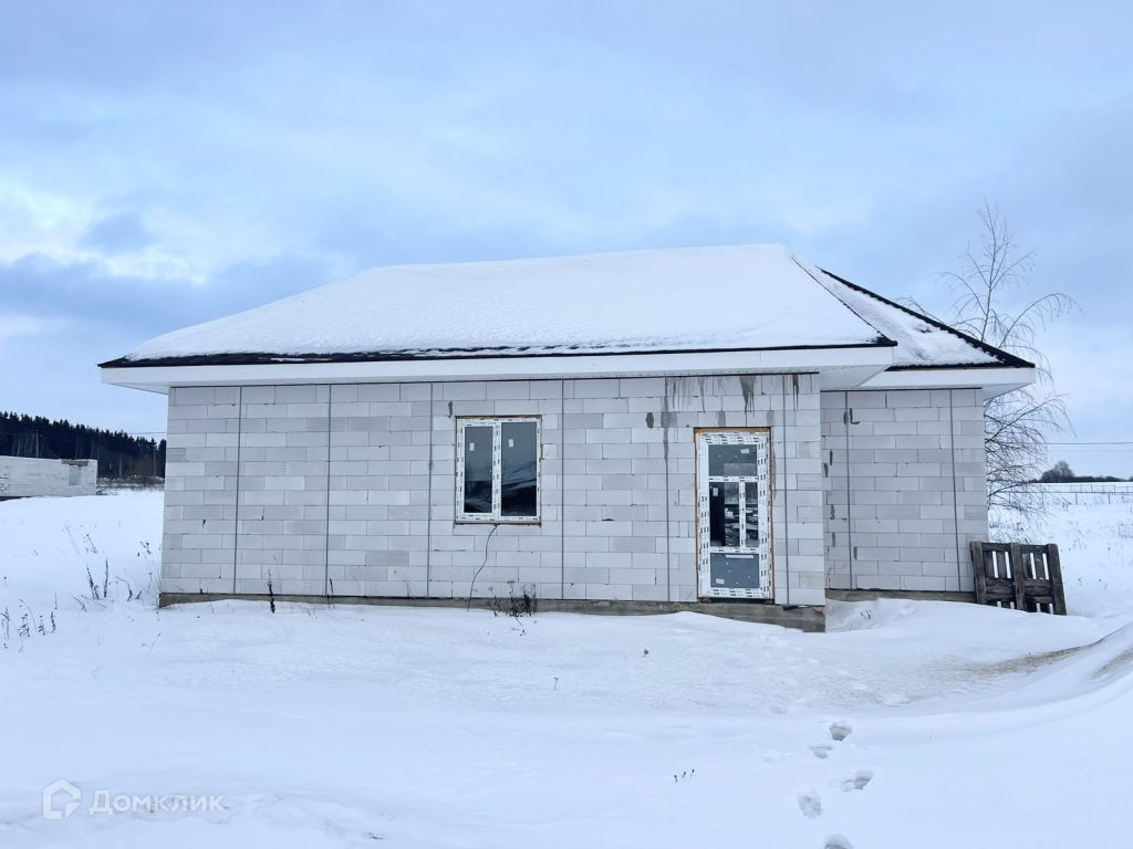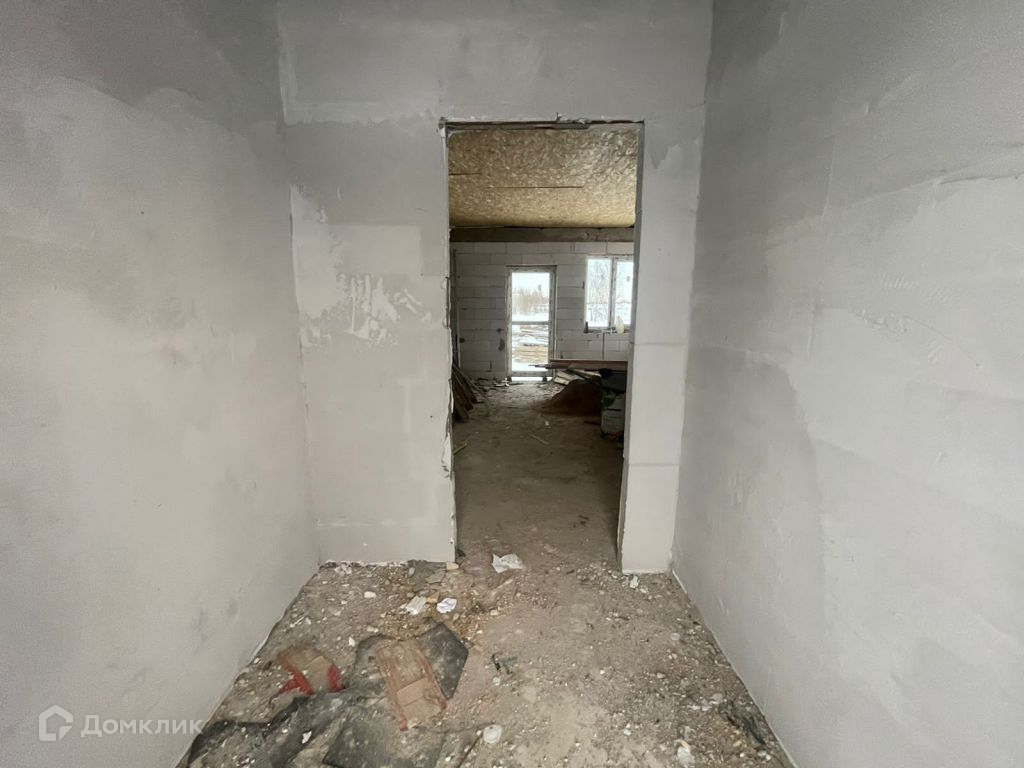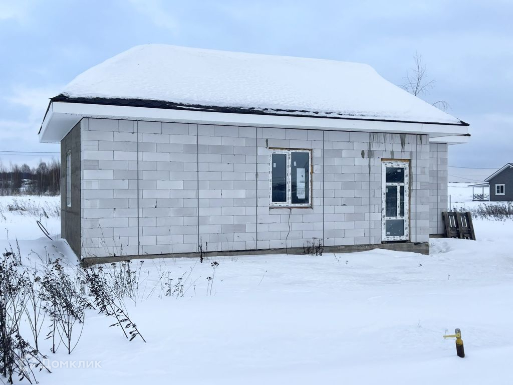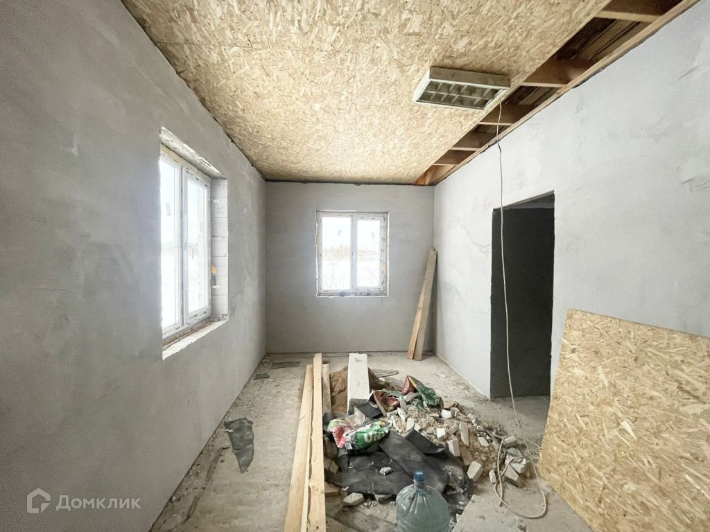 Дом из газосиликата, кровля - мягкая черепица, фундамент - железобетонная плита. Снаружи будет оштукатурен и покрашен, внутри ведутся работы, стены будут отштукатурены и подготовлены под покраску.