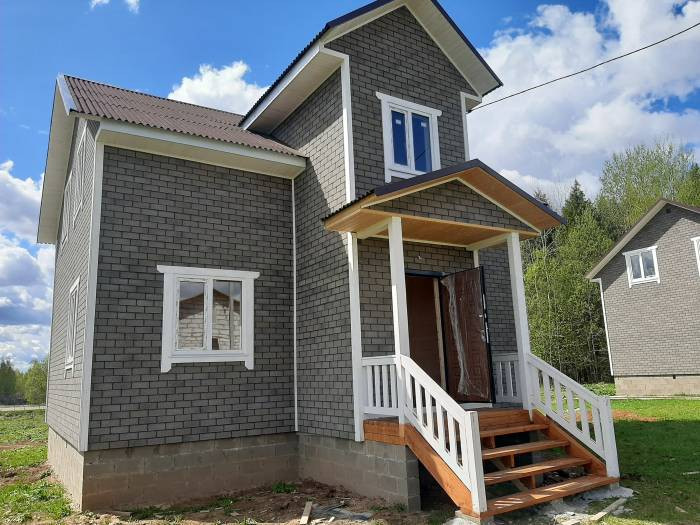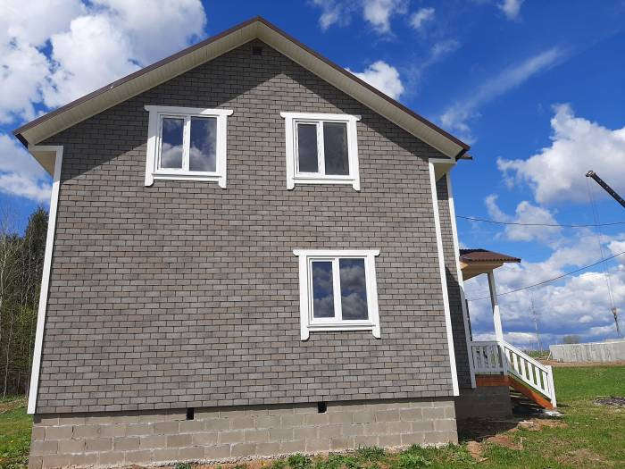 Дом  для проживания круглый год. Внутренняя отделка широкой имитацией бруса. Снаружи обшит фасадной плиткой (специальной гибкой черепицей), которая не требует покраски.