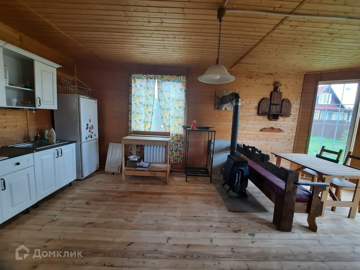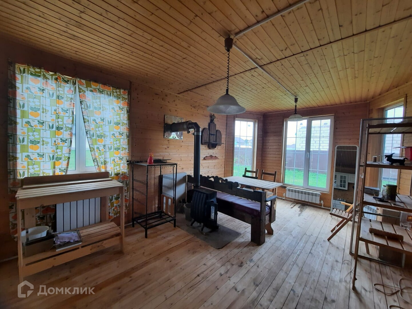 -Внутреняя отделка стены и потолок обшиты вагонкой.