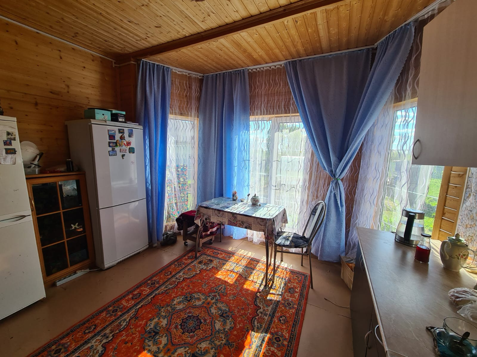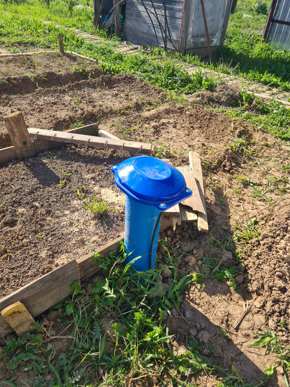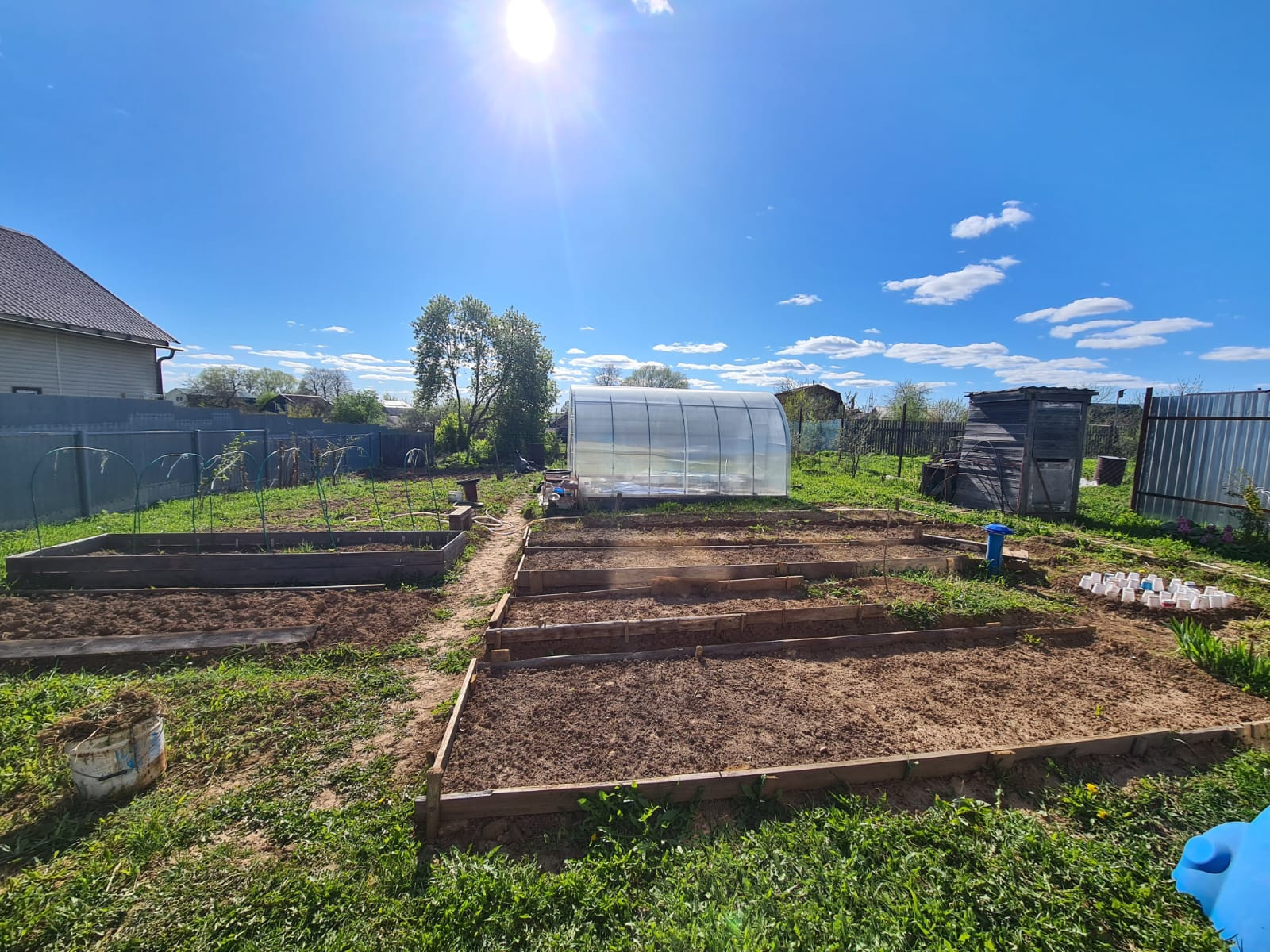 Участок большой, ровный, сухой. Во дворе стоит теплица, колодец и уличный туалет.