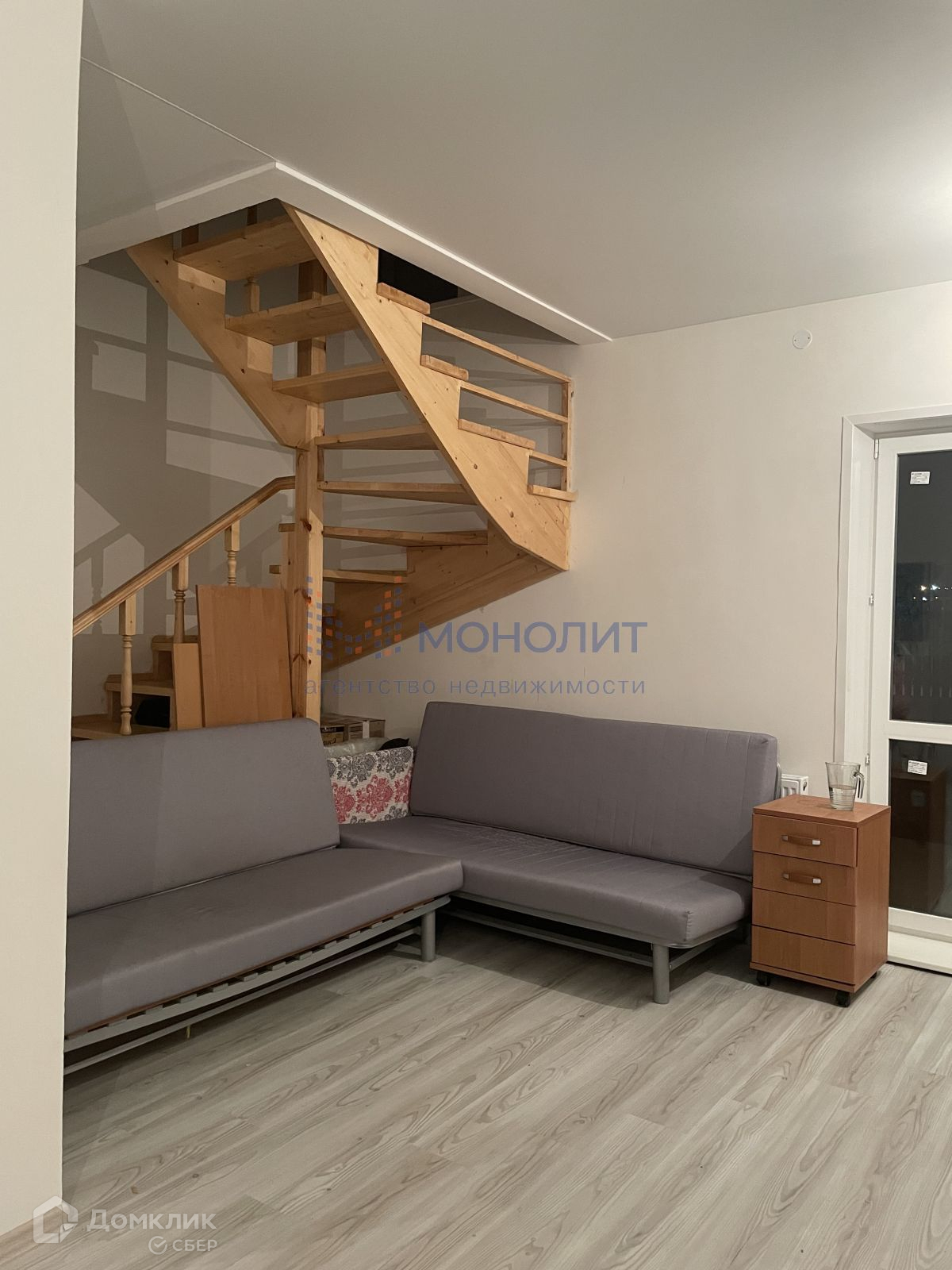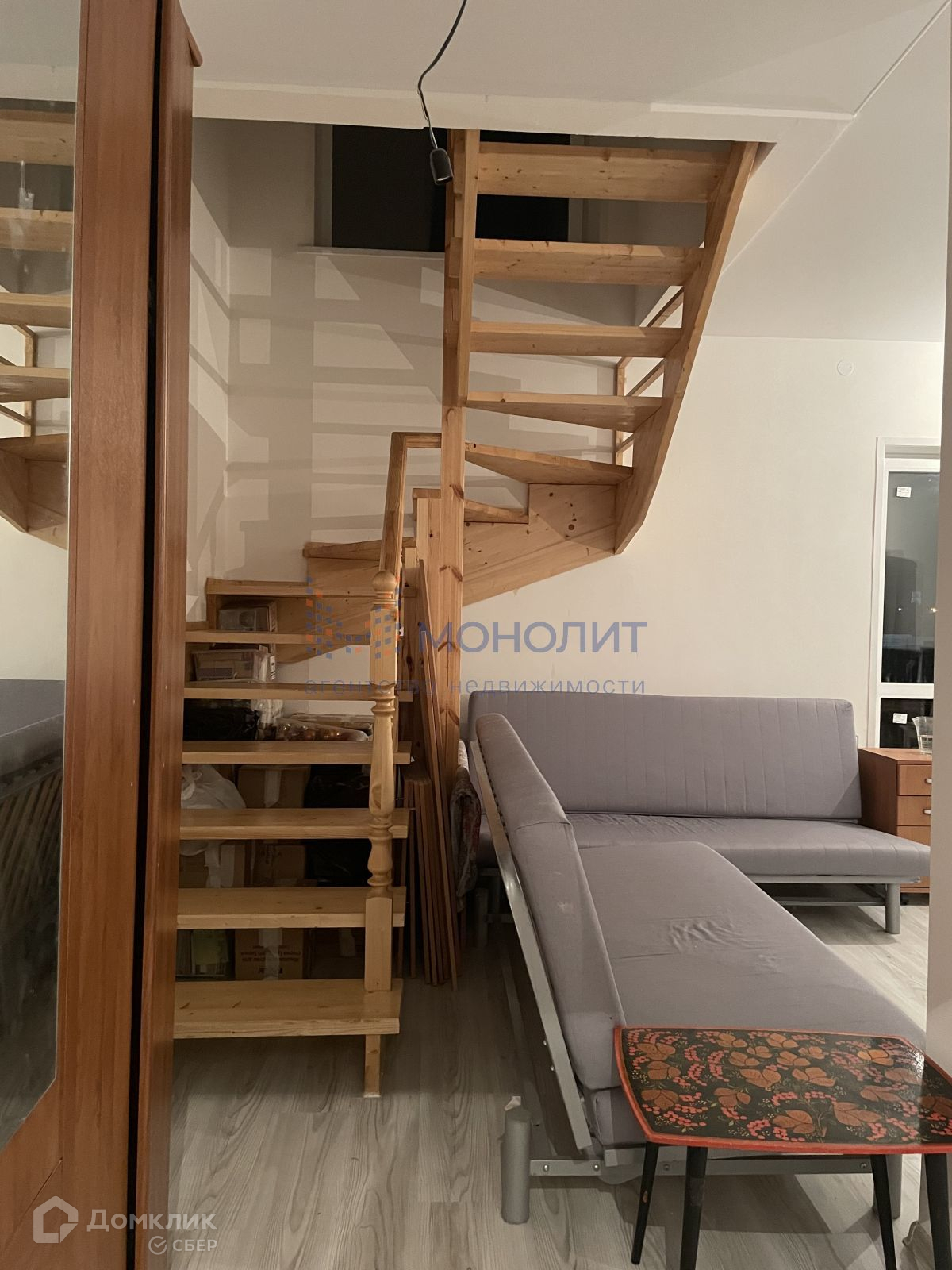 - Лестница-деревянная, развёрнутая таким образом, чтобы в прихожей убрался полноценный гардероб.