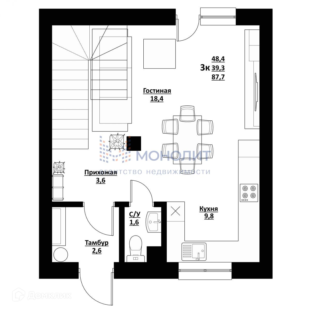 Общая площадь 88 м2