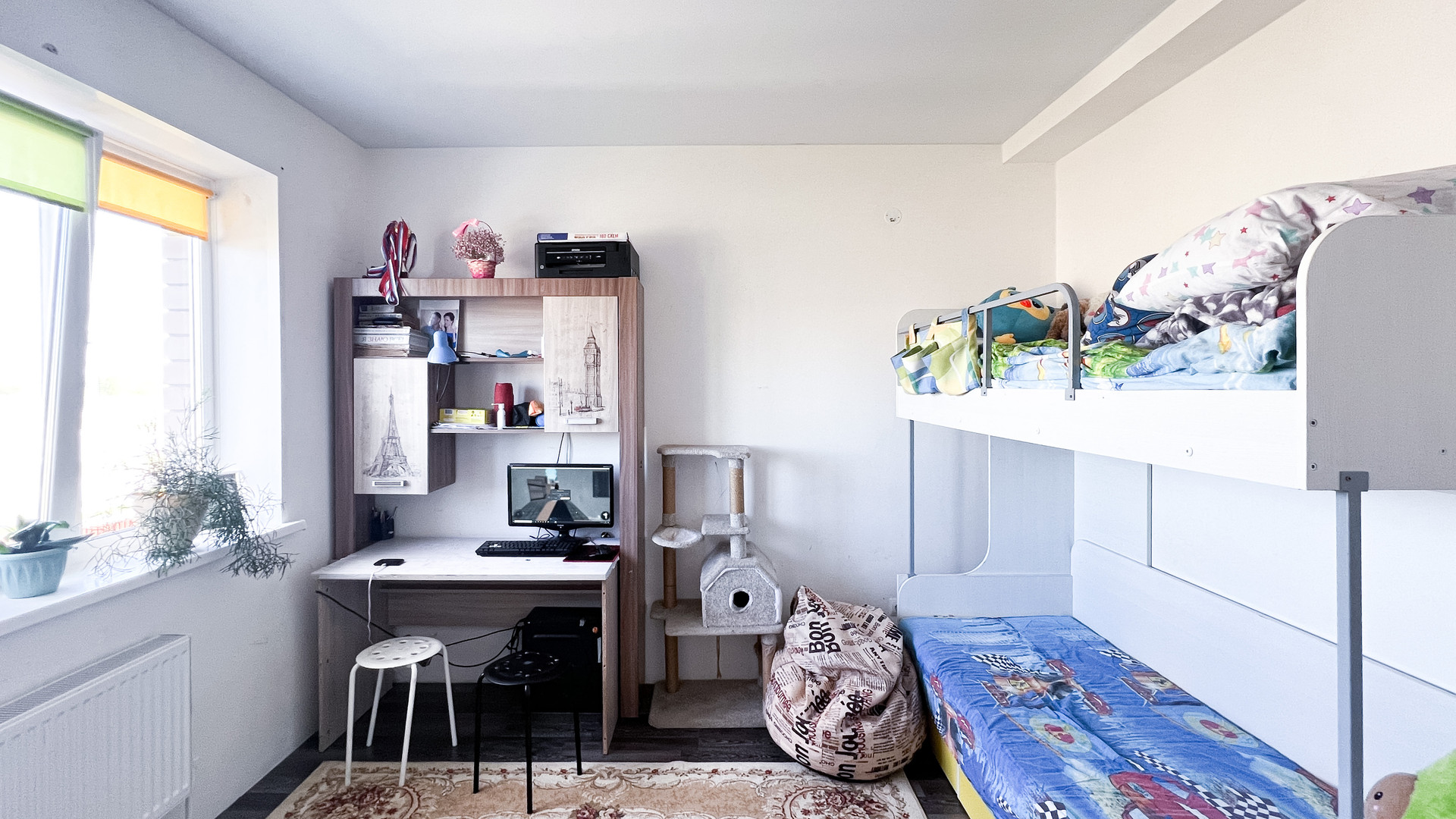 На втором этаже расположены: спальня и детская комната, ванная комната с санузлом и большим встроенным шкафом.