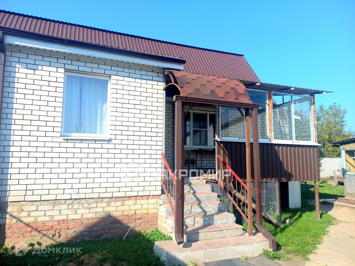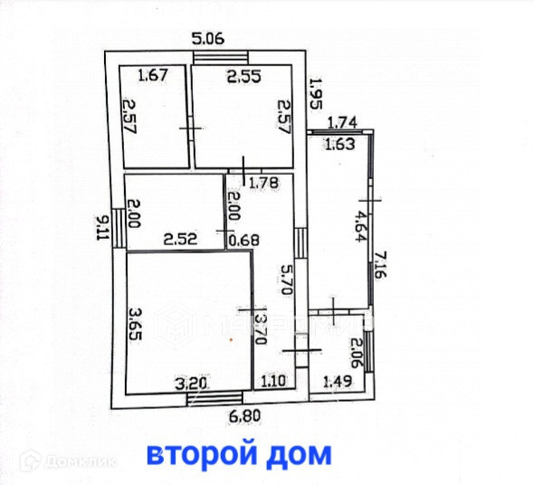 Второй дом 1-этажный, кирпичный, состоит из веранды, коридора, 2 изолированных комнат, кухни и с/у, вода центральная, газовая колонка-автомат, канализация местная.
